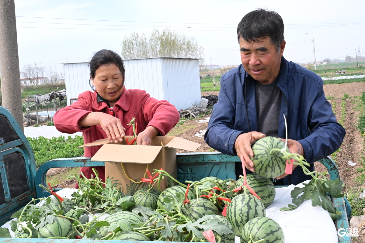 青岛日报社/观海新闻4月13日讯 近日,青岛市即墨区移风店镇“迷你西瓜”进入收获期,农民忙着采摘收获,供应市场。近年来,该镇优化农业产业结构,通过“合作社+基地+农户”的模式,发展大棚瓜果等特色产业,开发种植的一藤一瓜“迷你西瓜”、甜瓜及水果型迷你黄瓜等农产品俏销市场,促进农业增效、农民增收,助力乡村振兴。(青岛日报/观海新闻记者 王涛 通讯员 张涛 文/图)