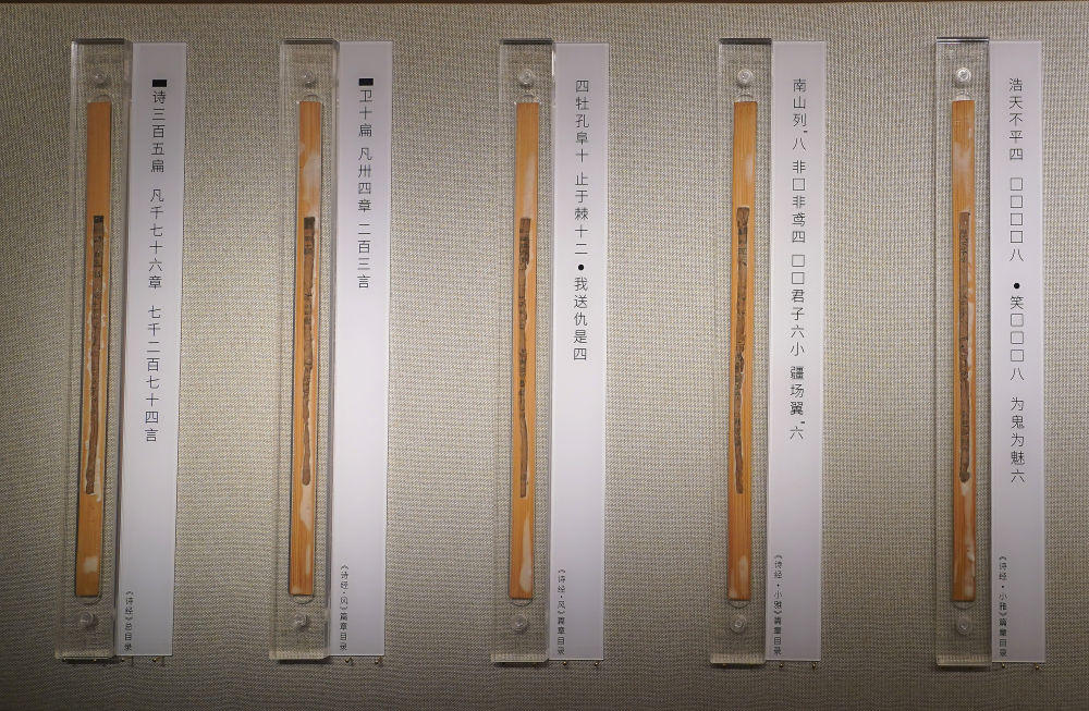 图为海昏侯国遗址博物馆“书香海昏”展厅中的《诗经》简。新华社记者万象 摄