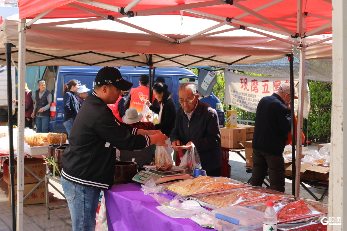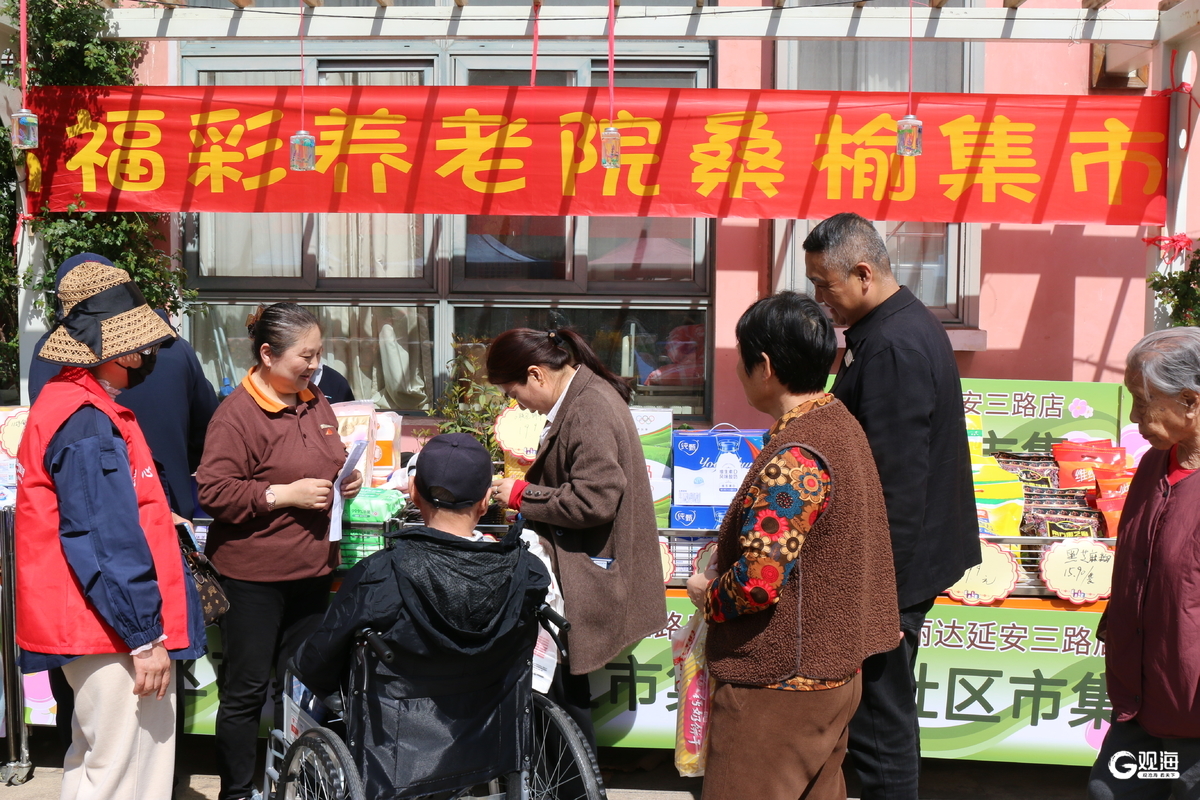 “我腿不好,好久没这么热闹地逛过了。有人陪着逛,帮我挑了一双鞋、一些面包,还给我讲价格,跟亲人一样。”70多岁的王爷爷拉着志愿者的手说。志愿者笑着说:“老人们开心,我们也高兴。”