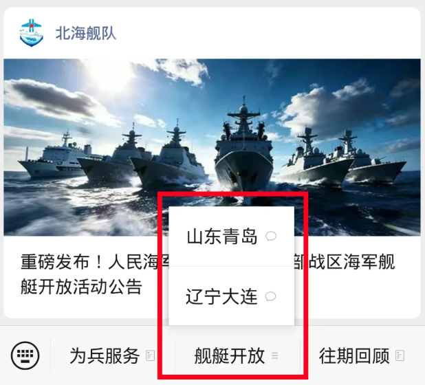 点击菜单栏“舰艇开放-山东青岛”