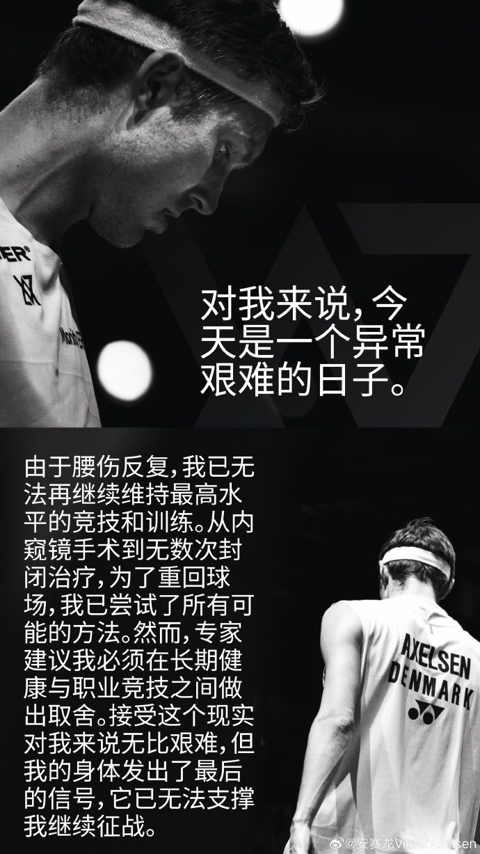 由于腰伤反复,我已无法再继续维持最高水平的竞技和训练。从内窥镜手术到无数次封闭治疗,为了重回球场,我已尝试了所有可能的方法。然而,专家建议我必须在长期健康与职业竞技之间做出取舍。接受这个现实对我来说无比艰难,但我的身体发出了最后的信号,它已无法支撑我继续征战。