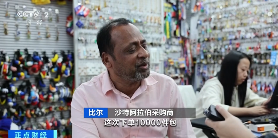 像比尔这样奔着世界杯商机来的采购商不在少数,约旦采购商萨布里和经营户讨价还价,马里采购商西拉也带着对足球的热爱细心挑选着产品。