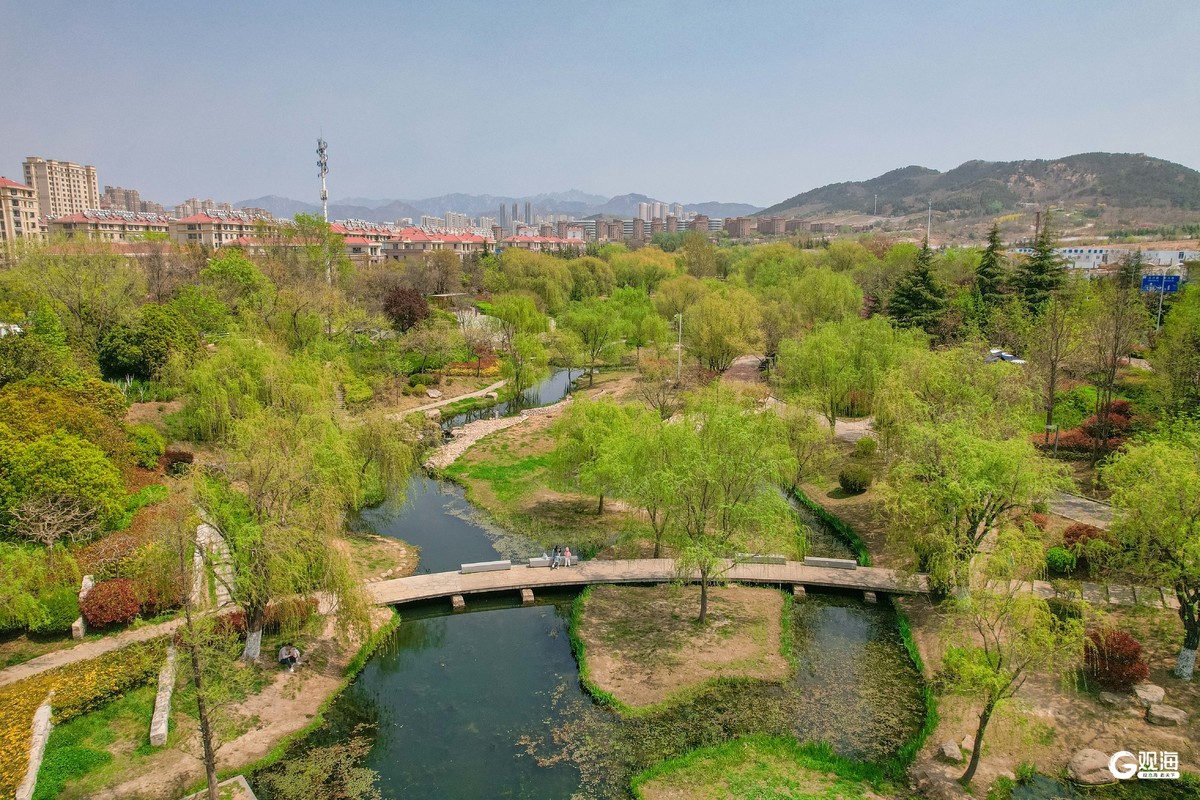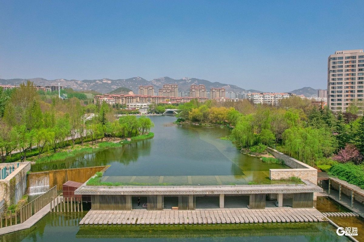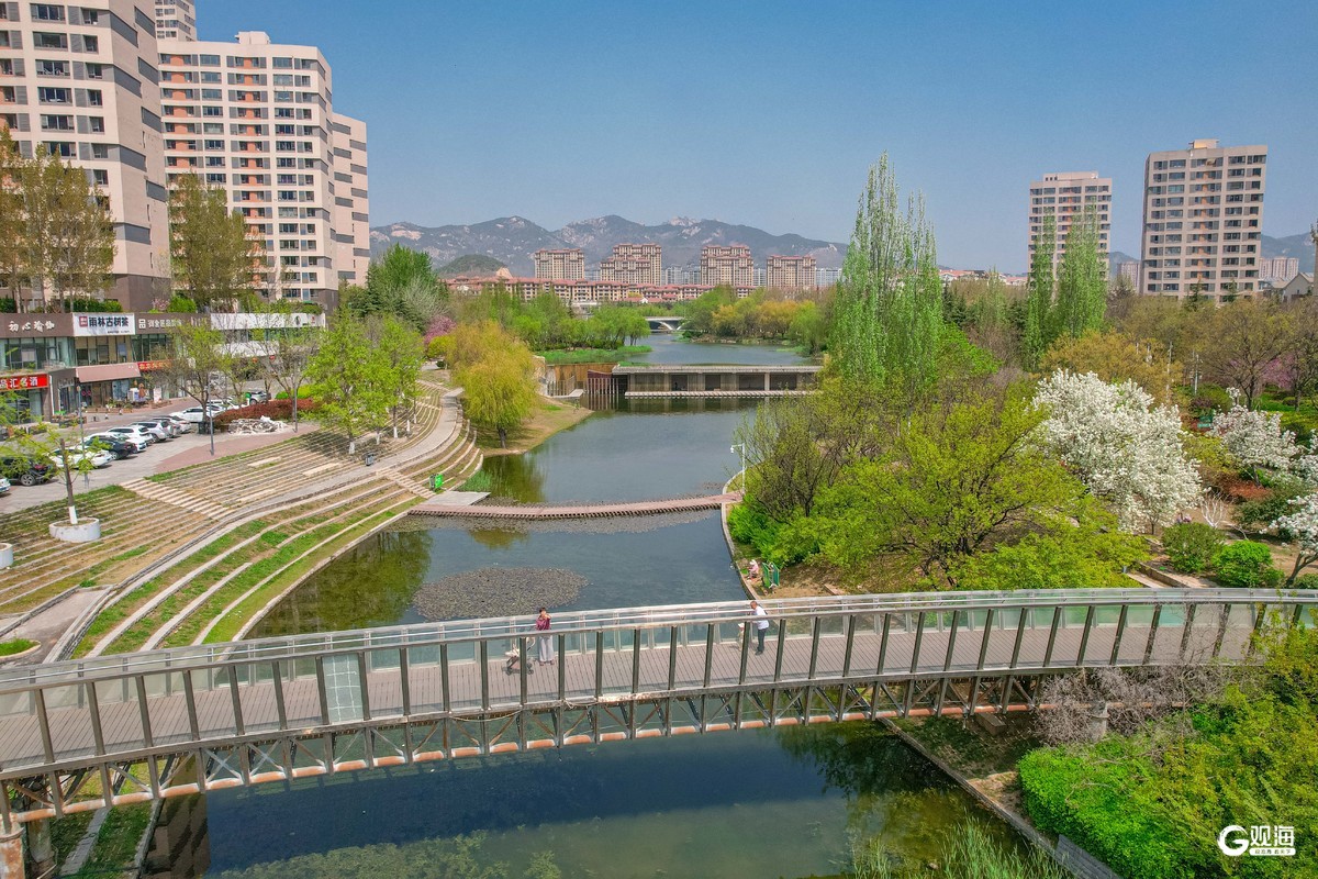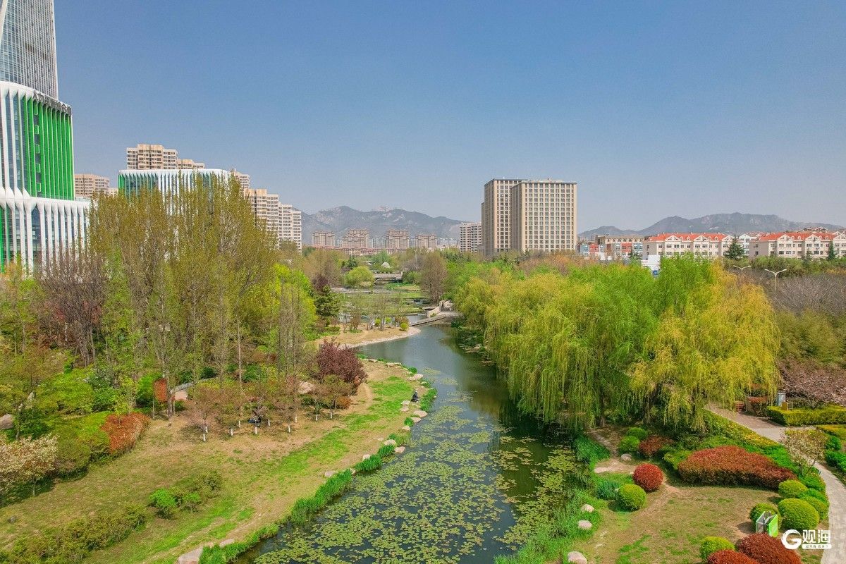 李村河春意盎然,勾勒出一幅生态城市画卷。