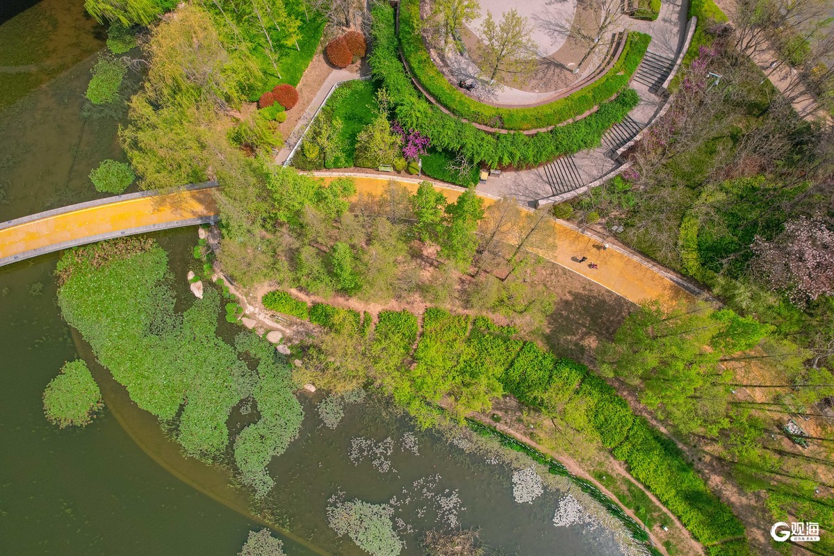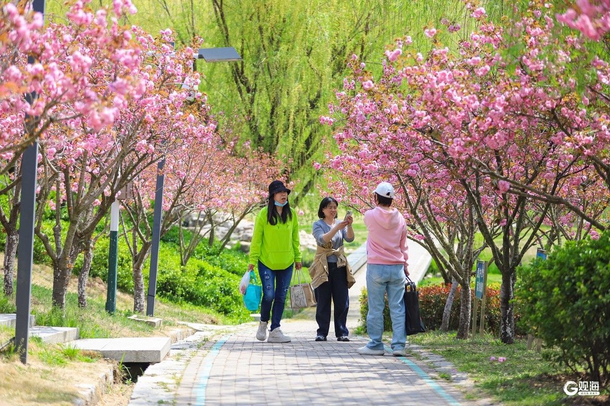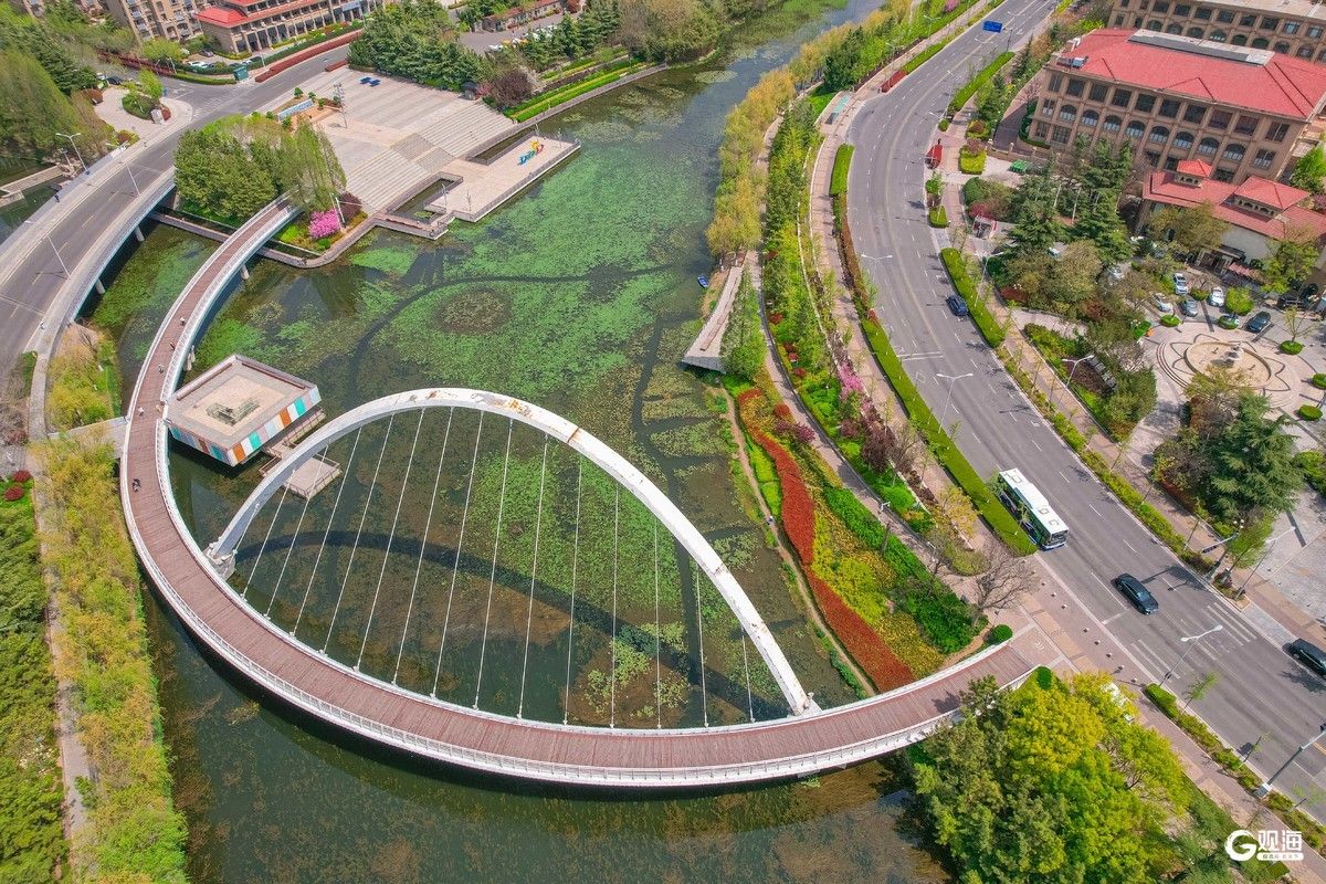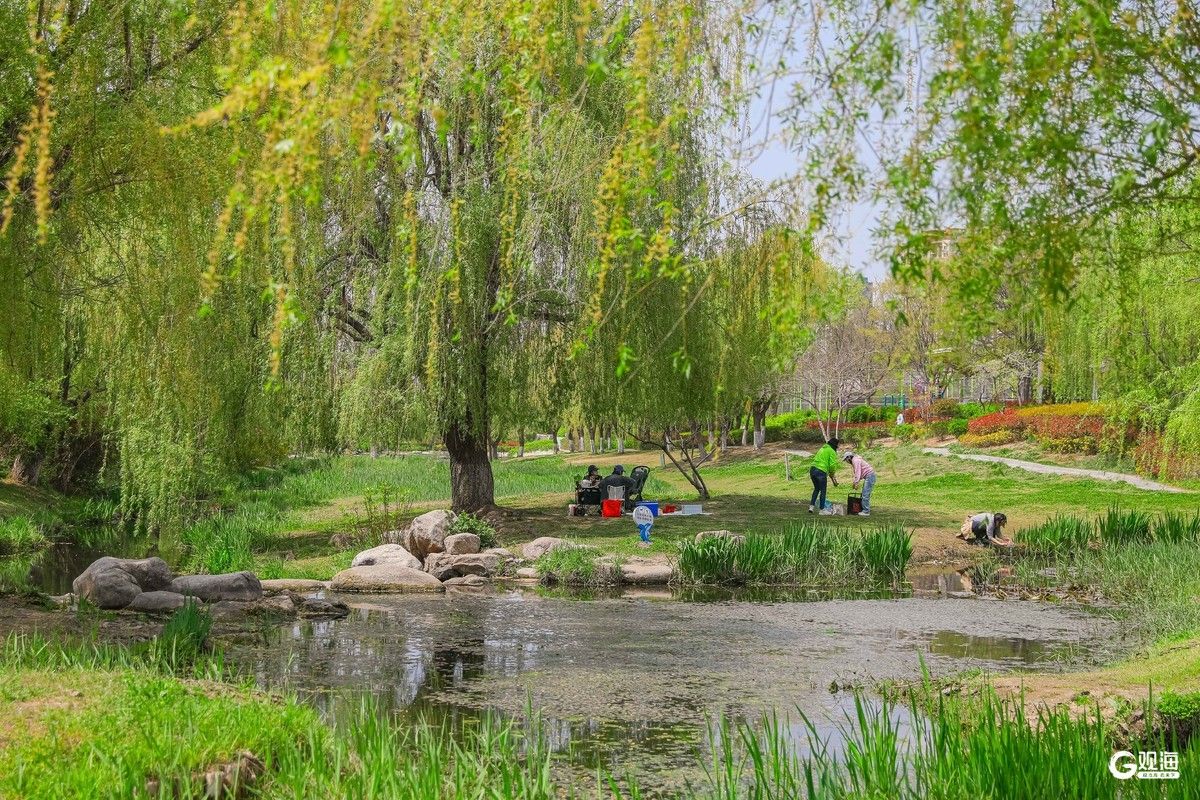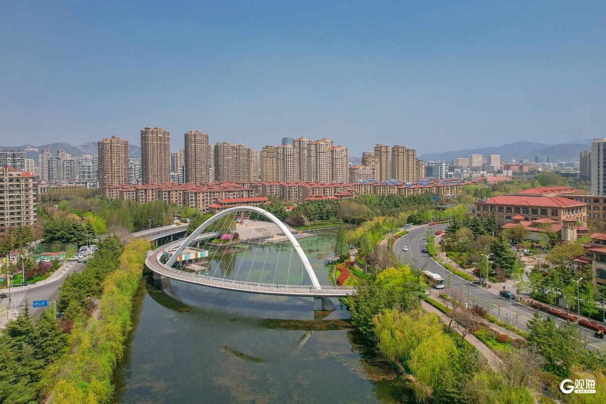 李村河春意盎然,勾勒出一幅生态城市画卷。