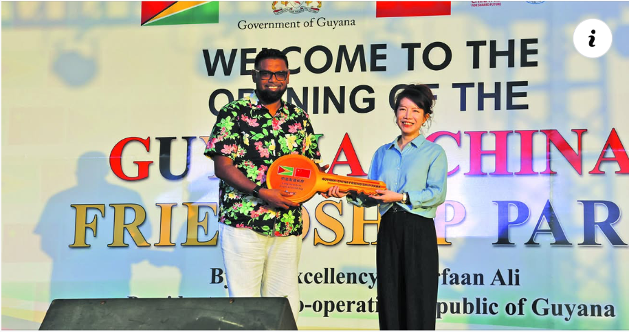 青岛日报社/观海新闻4月16日讯 4月12日,由青建集团股份公司承建的援圭亚那中圭友谊公园项目在圭亚那首都乔治敦举行开园及交付仪式。圭亚那总统阿里、中国驻圭亚那大使杨扬共同出席仪式,青建集团股份公司执行总裁、圭亚那分公司总经理刘汉进参加。中圭各界嘉宾及当地民众代表共同见证了这一承载两国深厚友谊的里程碑时刻。