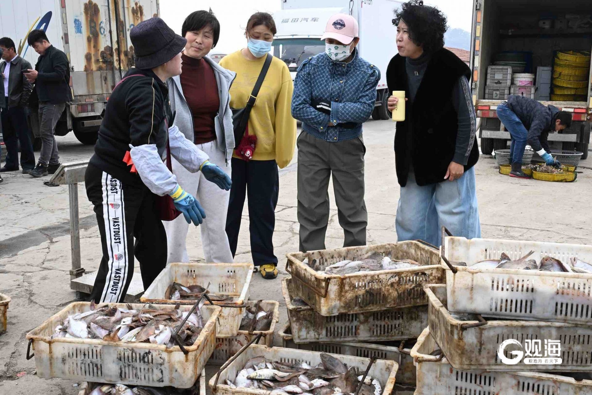来自海阳市辛安镇台子头村的海鲜商贩徐冰波是栲栳码头的“常客”,当天上午9点多,他就驾驶着海鲜保鲜车早早抵达码头,抢占最佳交易位置。“就等着渔船靠岸,第一时间收最新鲜的货。”徐冰波说道。