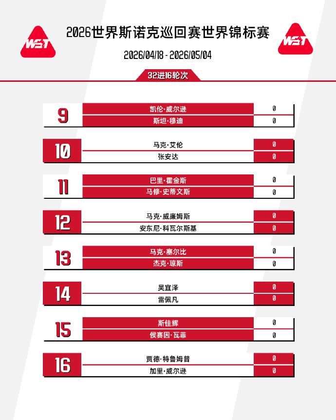 2026斯诺克世锦赛正赛签表↓↓↓