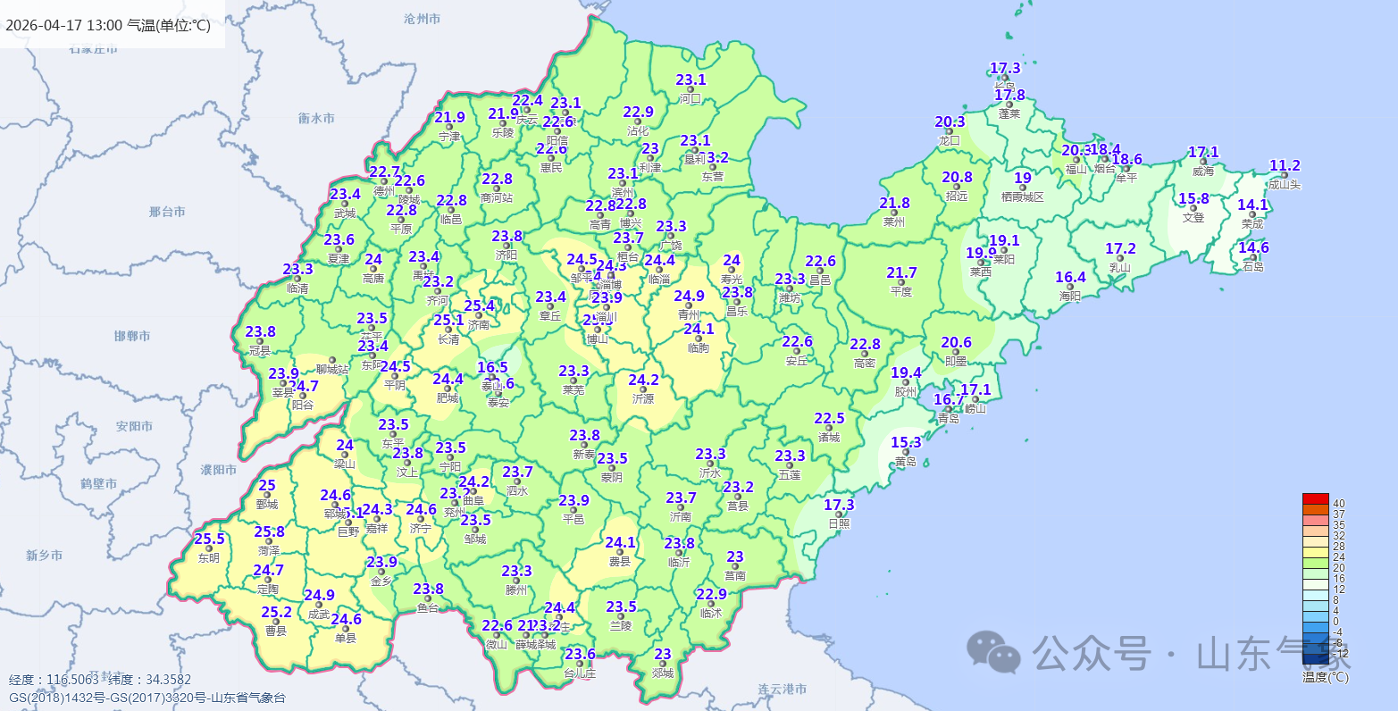 17日下午到18日白天,半岛地区天气多云转晴,其他地区天气晴到少云;南部沿海地区17日夜间有雾或轻雾。东营和半岛地区南风3~4级增强到4~5级阵风6~7级,鲁中和鲁南地区北风转南风3~4级,其他地区南风3~4级。最低气温:临沂、日照和半岛地区10℃左右,其他地区14℃左右。18日最高气温:滨州、东营、济南、淄博和潍坊30℃左右,南部沿海地区23℃左右,其他地区27℃左右。