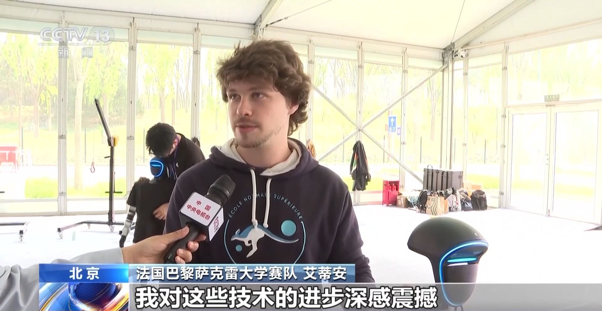 法国巴黎萨克雷大学赛队 艾蒂安:这项赛事太令人惊叹了,当我看到他们所取得的成果,比如去年举办的首届机器人马拉松,再对比今年的表现,我对这些技术的进步深感震撼。去年还有一些机器人站稳都很费劲,而今年几乎所有的机器人都能站得稳并且全都在比拼性能了。