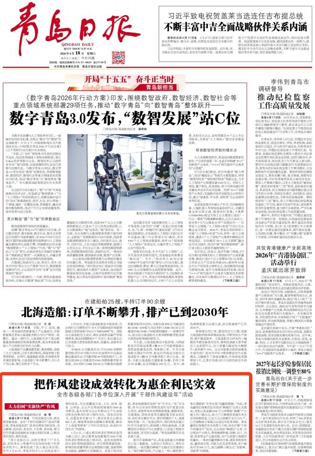 青岛日报社/观海新闻讯 作风改得怎么样,群众感受最直接。全市“干部作风建设年”活动开展以来,青岛各级各部门各单位聚焦为民服务、为企解难,出实招、务实功、干实事、求实效,努力把作风建设成效转化为惠企利民实效,让群众看到变化、得到实惠。