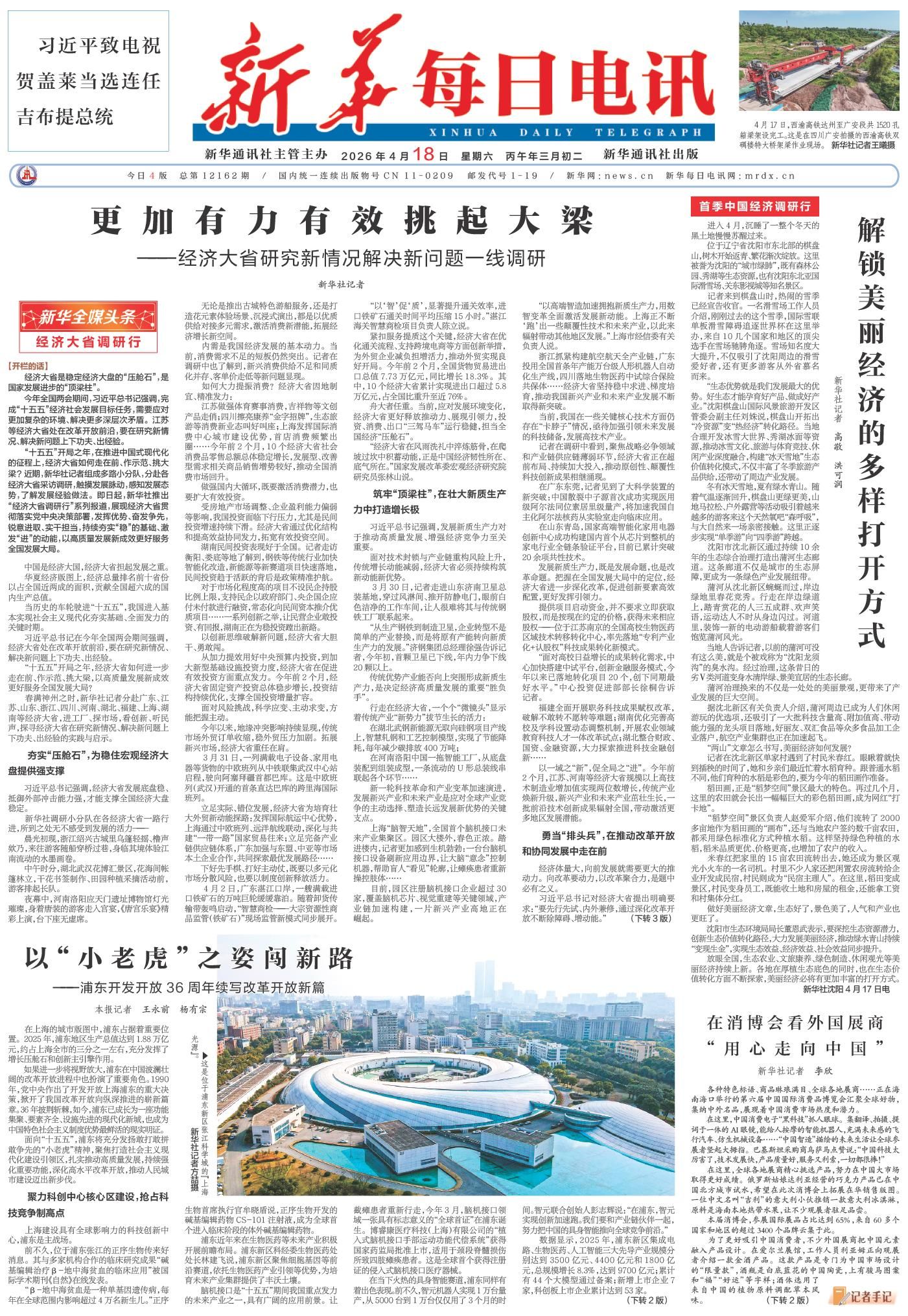 以一域之“新”,促全局之“进”。今年前2个月,江苏、河南等经济大省规模以上高技术制造业增加值实现两位数增长,传统产业焕新升级,新兴产业和未来产业茁壮生长,一批前沿技术创新成果辐射全国,带动激活更多地区发展潜能。