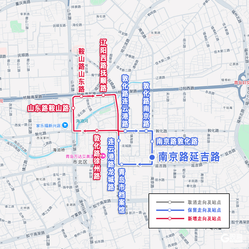 青岛日报社/观海新闻4月19日讯 四月芳菲,暖意渐浓。4月18日起,穿行在市北CBD的425路公交车伴随春风舒展出新的轨迹。为进一步精准匹配市民出行需求,在科学分析线路运行数据的基础上,425路进一步优化调整:从“南京路延吉路”站始发后,沿原线路至连云港路左转入敦化路,新经过山东路、鞍山路,再由连云港路、敦化路返回南京路,线路走向由“0”形,变为更具张力的“∞”形。