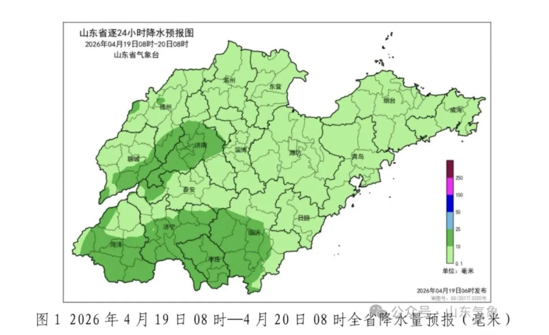 19日白天到夜间,鲁南和鲁中地区天气晴转阴有小雨部分地区中雨并伴有雷电,其他地区天气晴转阴有雷雨或阵雨;南部沿海地区19日早晨到上午有雾或轻雾。滨州、东营、鲁中山区和半岛地区南风4~5级阵风6~7级转北风5~6级阵风7~8级,其他地区南风3~4级转北风4~5级阵风6~7级,雷雨阵风7~9级。夜间最低气温:鲁西北和鲁中山区8℃左右,其他地区10℃左右。最高气温:滨州、东营、淄博和潍坊29℃左右,南部沿海地区22℃左右,其他地区27℃左右。