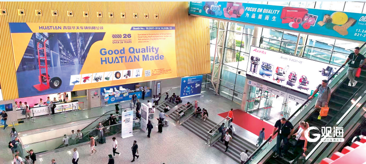 在广交会一期展馆,华天车辆的巨幅品牌广告悬挂于B区核心通道,成为五金工具展区最具辨识度的“青岛制造”名片。