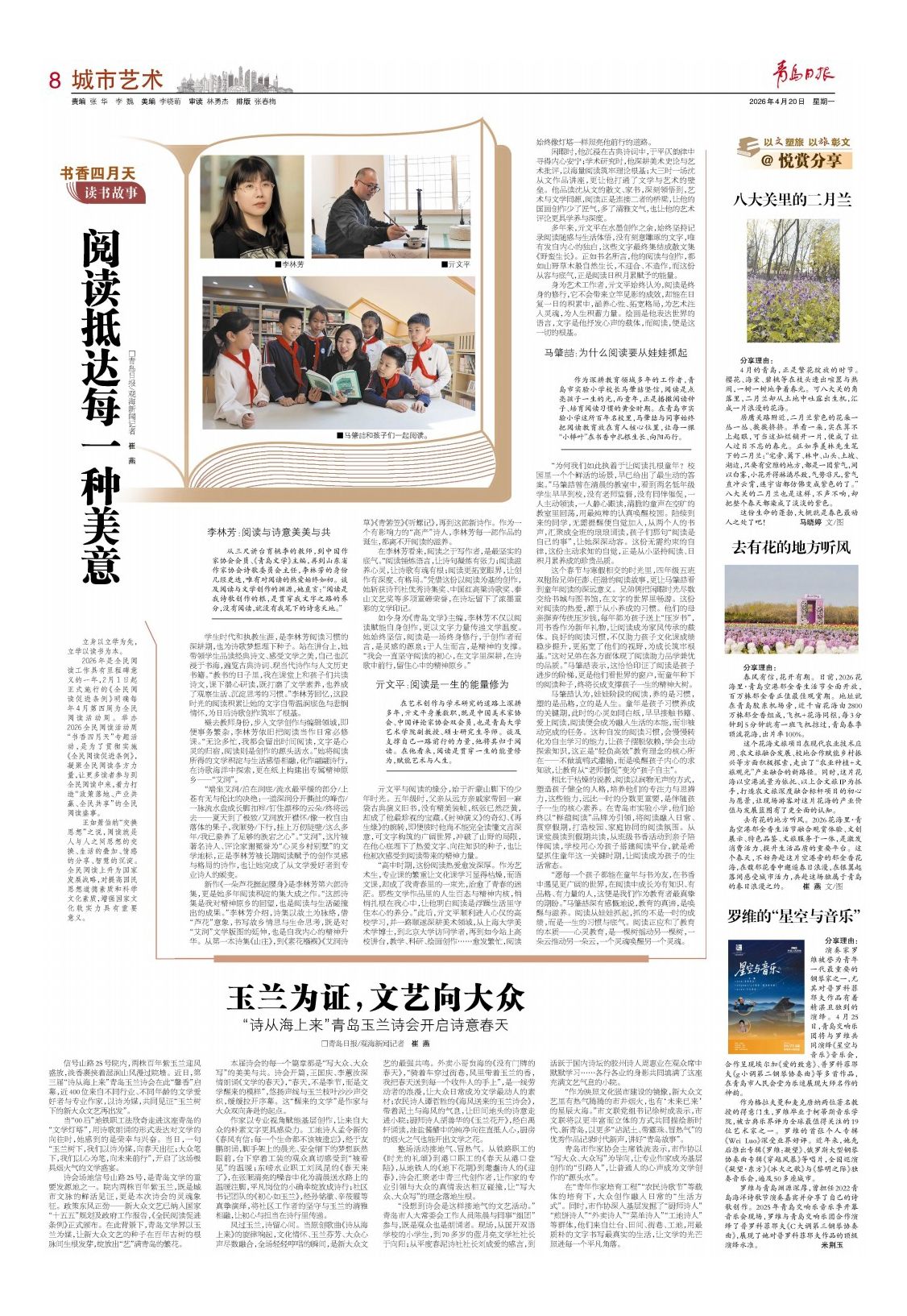 如今身为《青岛文学》主编,李林芳不仅以阅读赋能自身创作,更以文字力量传递文学温度。她始终坚信,阅读是一场终身修行,于创作者而言,是灵感的源泉;于人生而言,是精神的支撑。“我会一直坚守阅读的初心,在文字里深耕,在诗歌中前行,留住心中的精神原乡。”