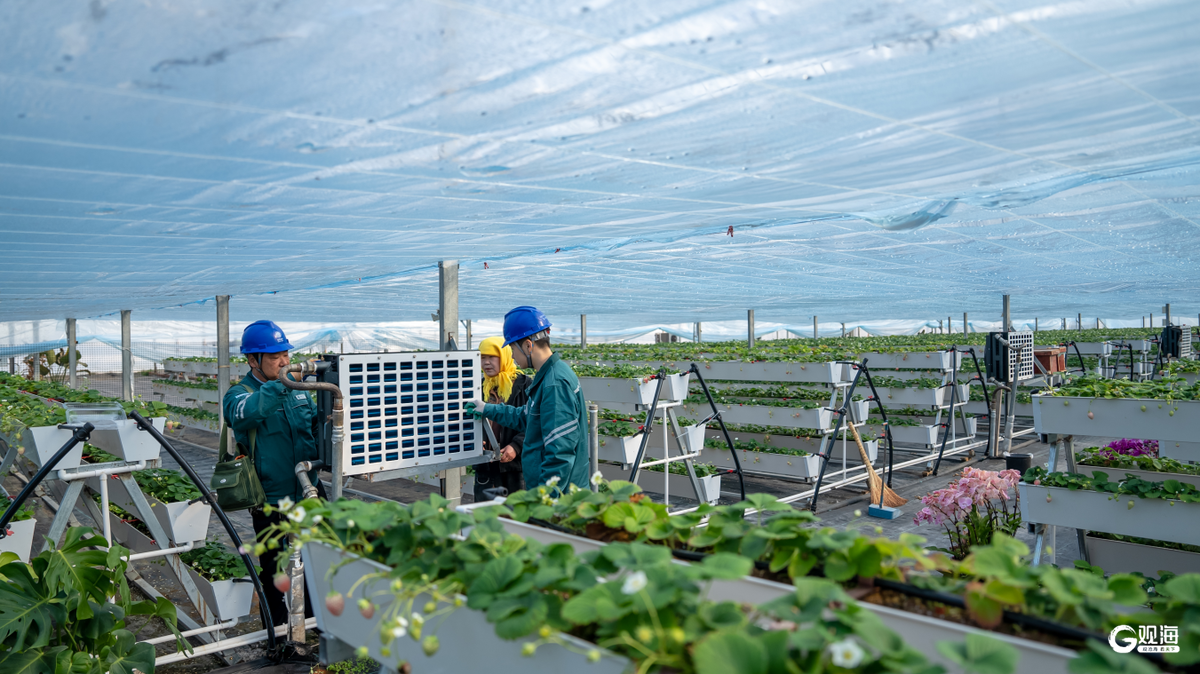 国网青岛供电公司工作人员到胶州上合·清水湾数字农业示范园对智能环控设备进行用电安全检查