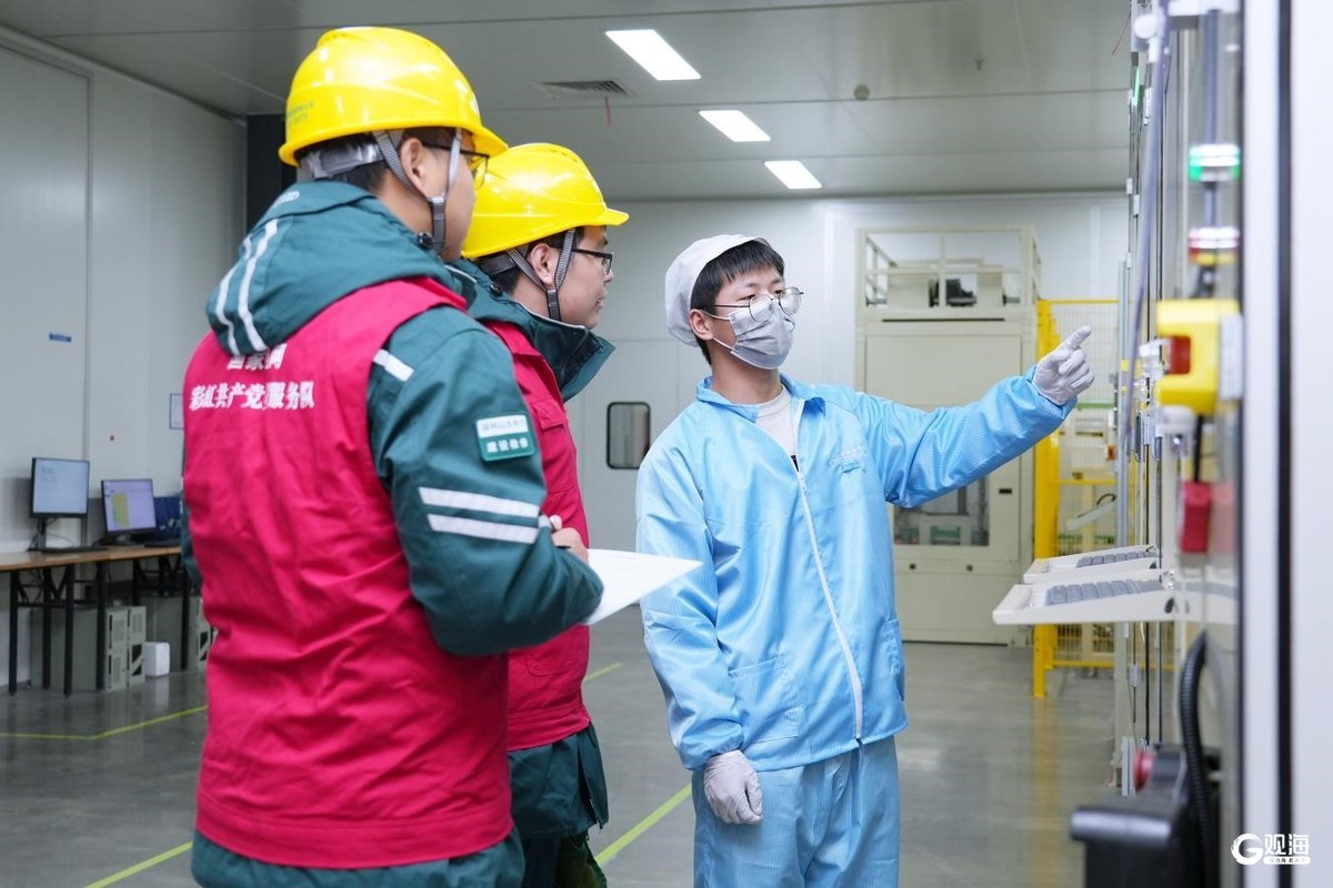 山东省重点项目鹏辉能源储能电池生产项目投产后,国网青岛供电公司员工回访鹏辉能源,为其提出设备维护建议。