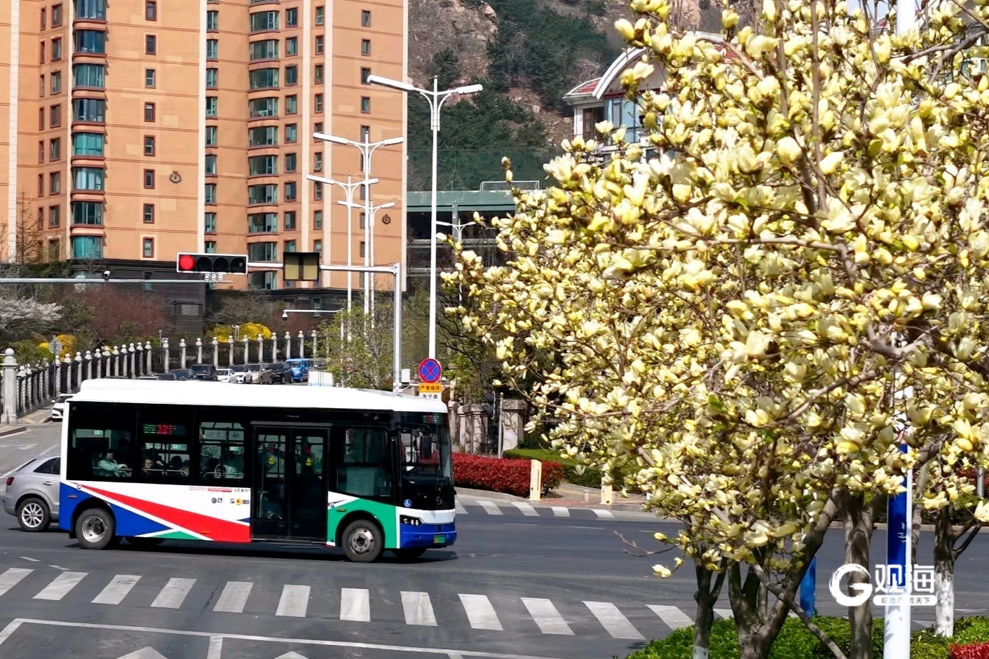 青岛日报社/观海新闻4月21日讯 春日青岛,繁花似锦。当玉兰花与大海相遇,整座城市便写满了浪漫的诗句。近日,青岛城运控股公交集团市南巴士321路打造“春日花海”主题车厢,以玉兰花为媒,串联起海宁路“花路直通大海”的春日胜景,邀请市民与游客共赴一场花海与海湾交织的梦幻旅程。