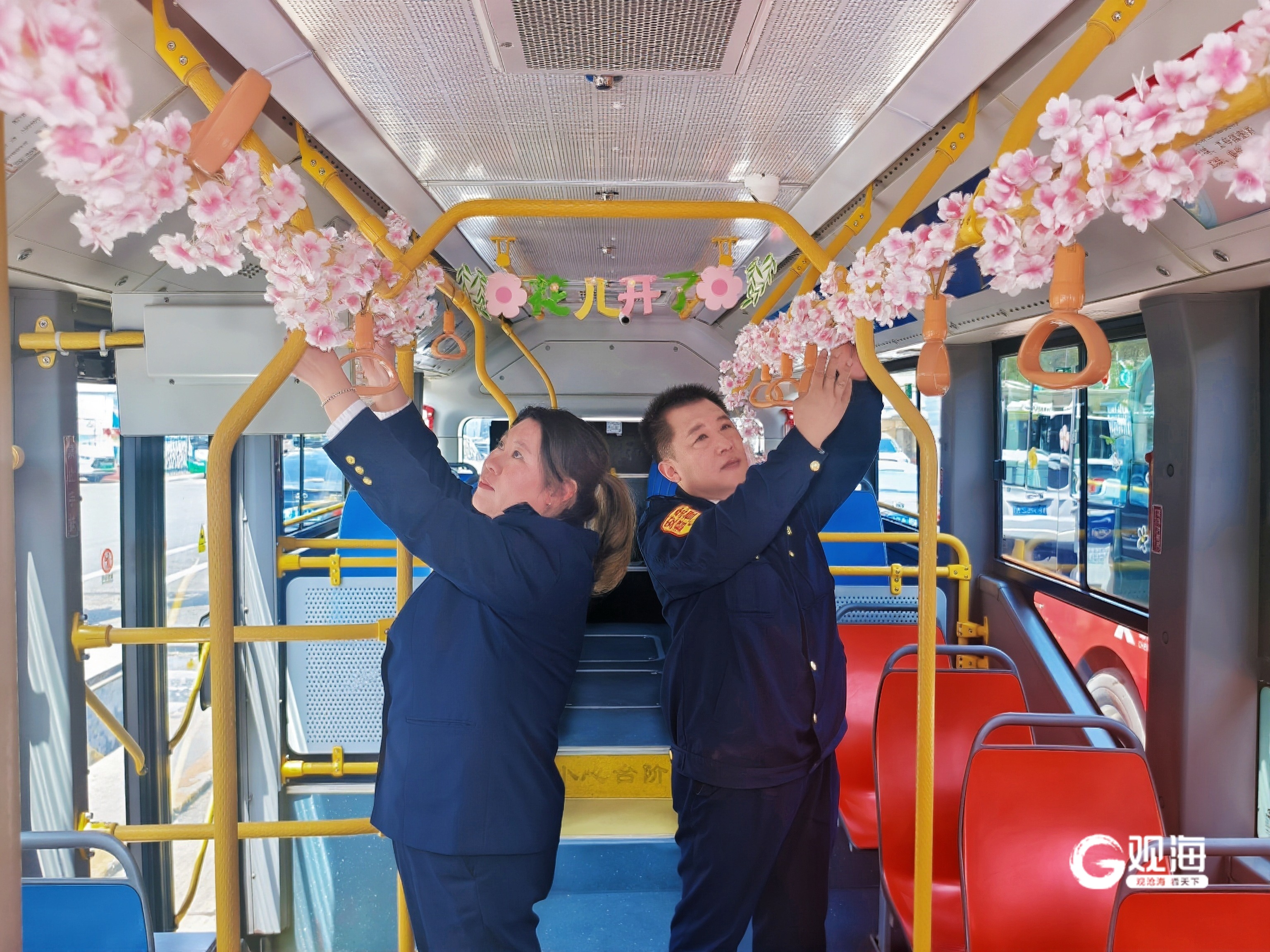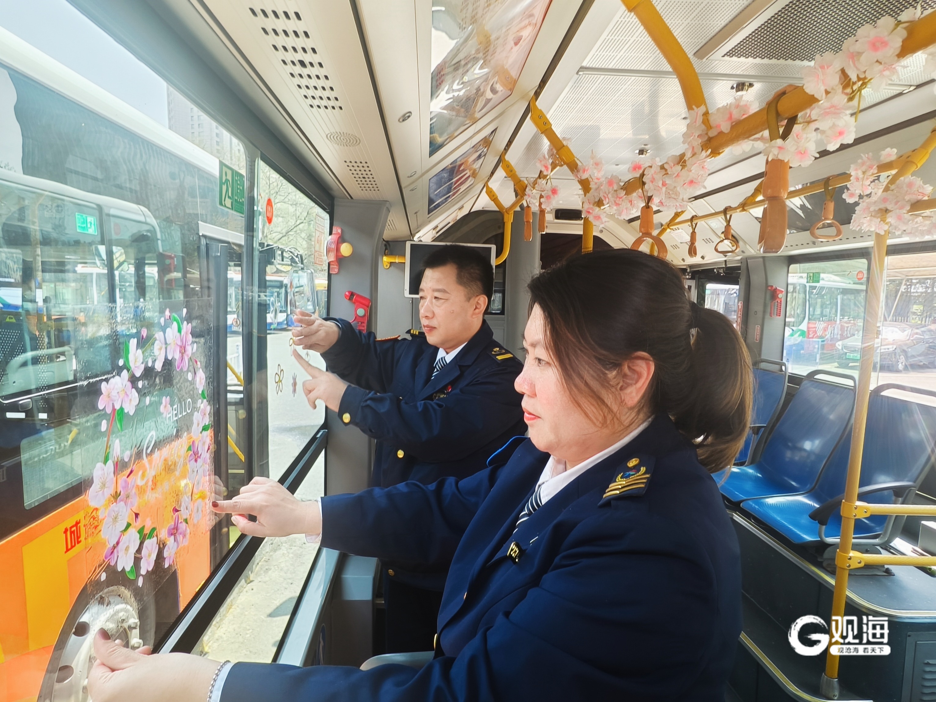 “青岛巴士”志愿者打造321路“春日花海”主题车
