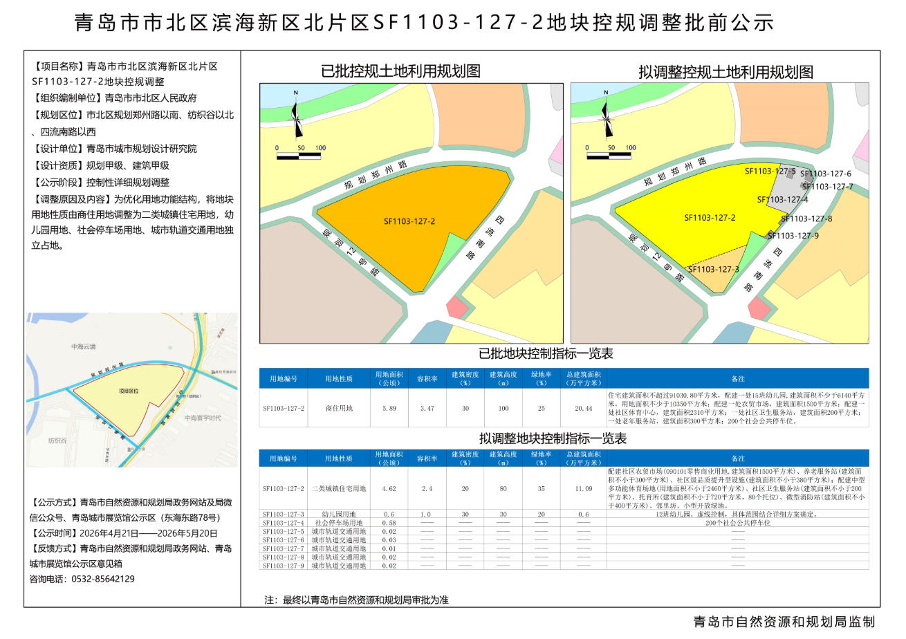 SF1103-127-3地块为幼儿园用地,将建设12班幼儿园。SF1103-127-4地块为社会停车场用地,拟配建200个社会公共停车位。(青岛日报/观海新闻记者 王冰洁)