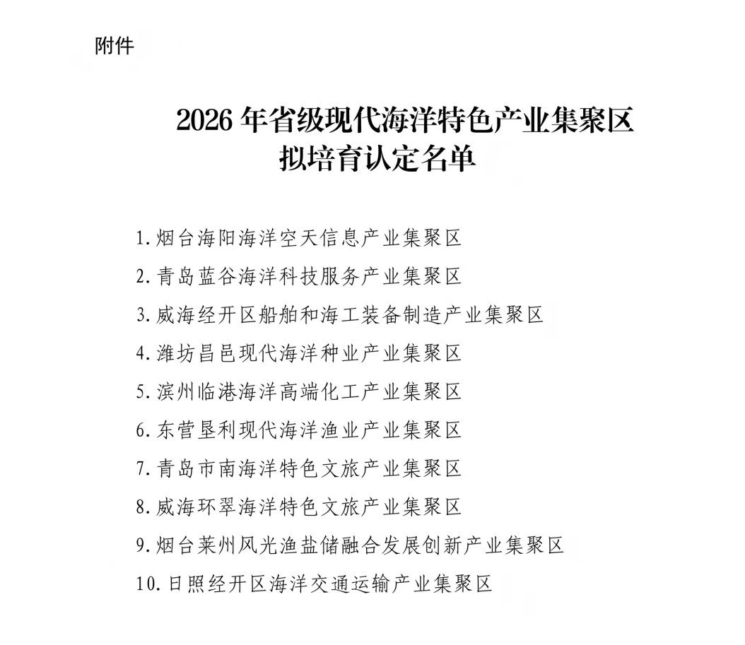 关于2026年省级现代海洋特色产业集聚区拟培育认定名单的公示