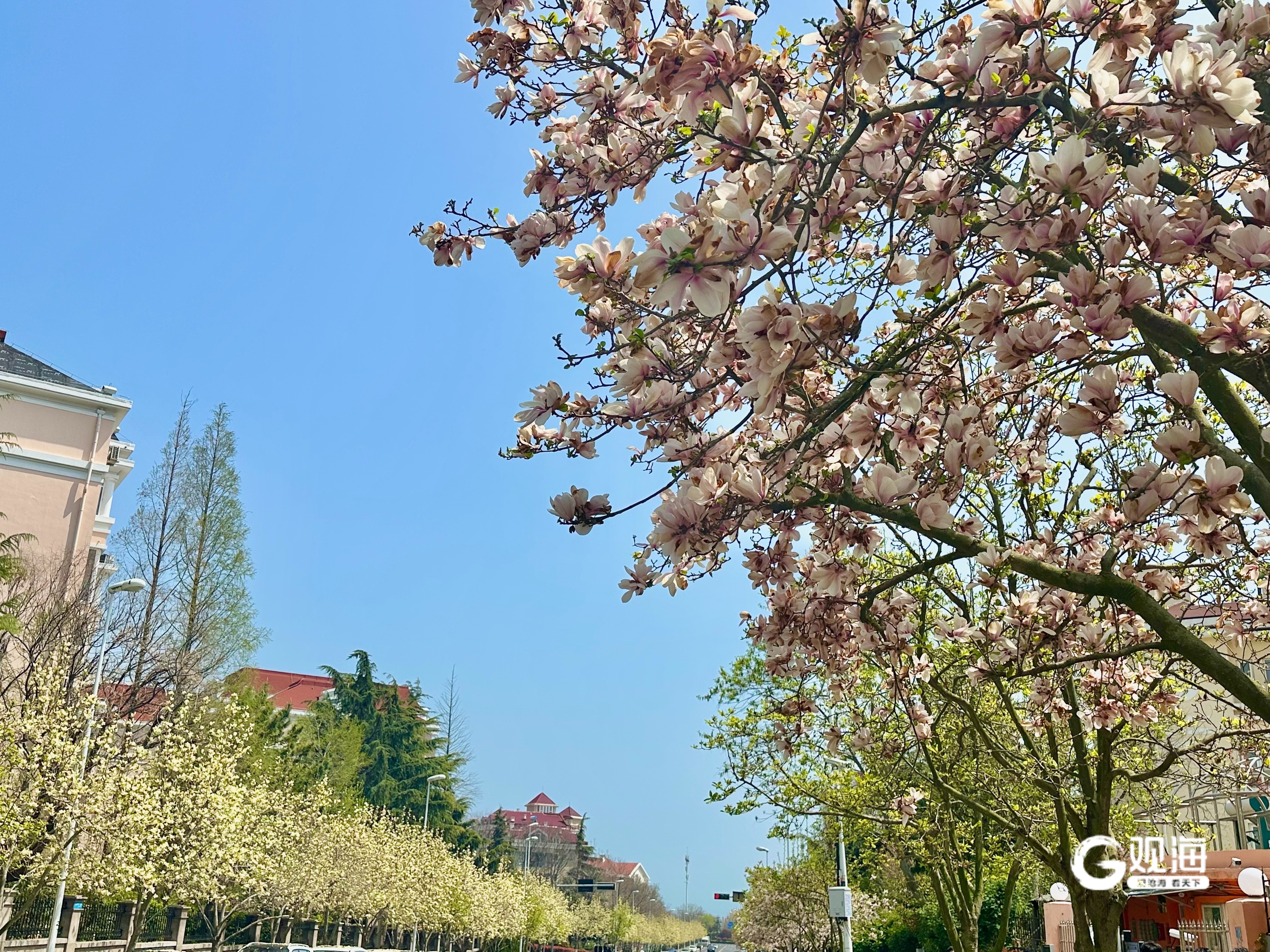 青岛日报社/观海新闻4月21日讯 春风送暖,玉兰飘香。眼下,青岛崂山区海宁路“玉兰大道”进入盛花期,800米长街繁花满枝、美不胜收。