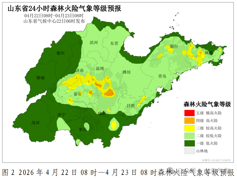 22日白天到夜间,全省天气多云间晴。临沂和南部沿海地区北风4级阵风5~6级减弱到3~4级,其他地区南风3~4级。夜间最低气温:枣庄、临沂和日照7℃左右,其他地区10℃左右。最高气温:济南、泰安、淄博、烟台和鲁西北地区21℃左右,南部沿海地区15℃左右,其他地区18℃左右。