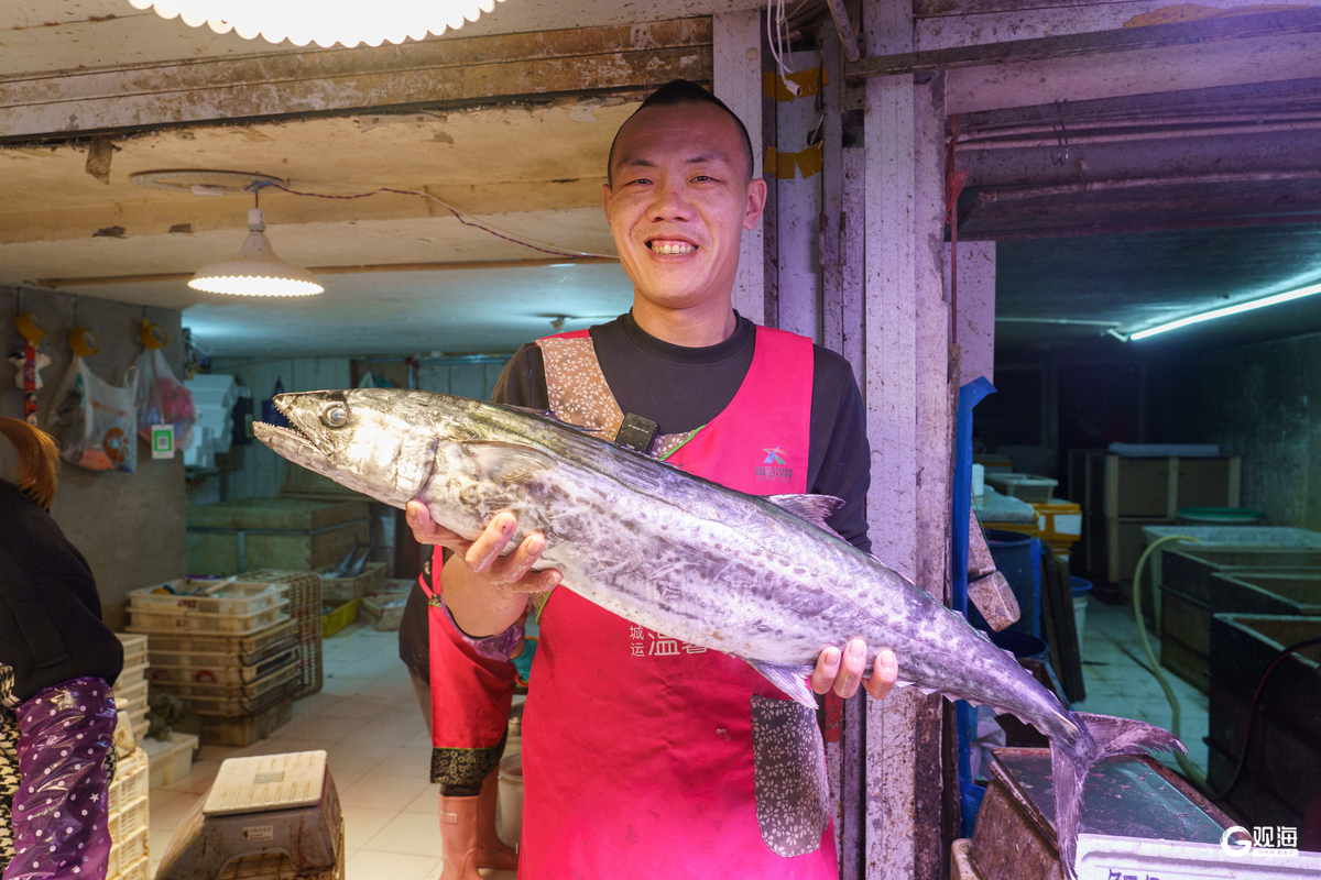 “一天能卖出一千多斤,7点多上客到现在已经卖了一多半了!”4月21日上午9点半,一名经营鲅鱼的业户边称重边介绍,该摊位的鲅鱼销售火爆,按8斤左右一条计算,平均每两分钟就能卖出一整条。“价格根据到货量每天变化,今天22块一斤,还可以提前订货、泡沫装箱,需要预处理的可以直接切成鱼块,回家就能下锅,特别方便。”摊主一边帮顾客装箱鲅鱼一边介绍道。