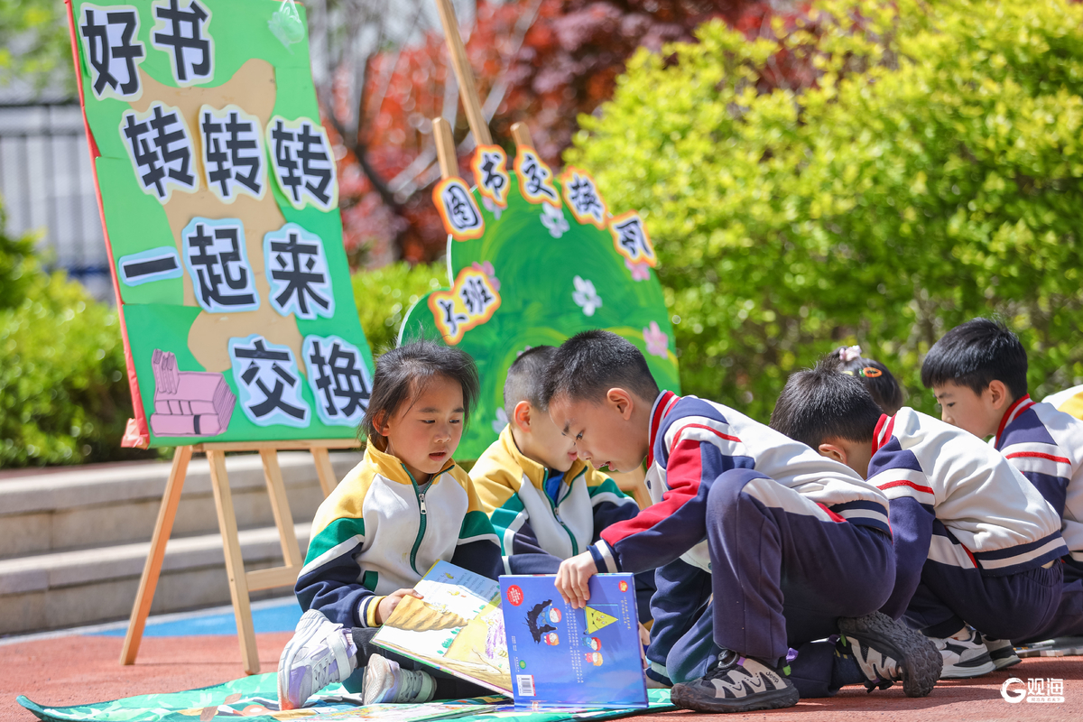 青岛日报社/观海新闻4月22日讯 在第31个世界读书日即将到来之际,青岛市多所中小学、幼儿园开展丰富多彩的读书主题活动,创新打造“全环境阅读”体系,创建“校园读书节”“作家进校园”“漂流书吧”等品牌活动,深化“校长领读”“亲子共读”等家校社联动模式,形成教师、家长、学生及社会各界共同参与的阅读推广新格局,持续营造爱读书、读好书、善读书的浓厚氛围。(青岛日报/观海新闻记者 周伟 通讯员 张鹰 摄影报道)