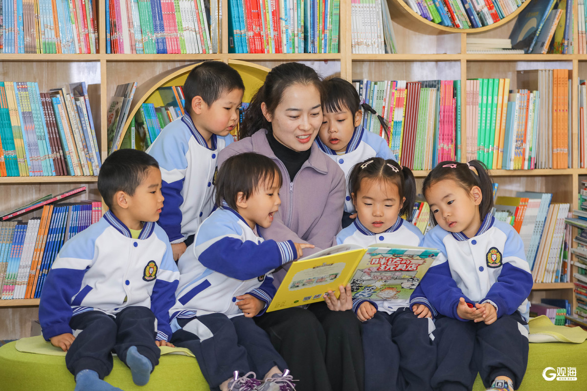 在青岛市李沧区青山路幼儿园开展的“‘青’情阅读 阅润童心”活动中,老师带领小朋友阅读绘本故事。