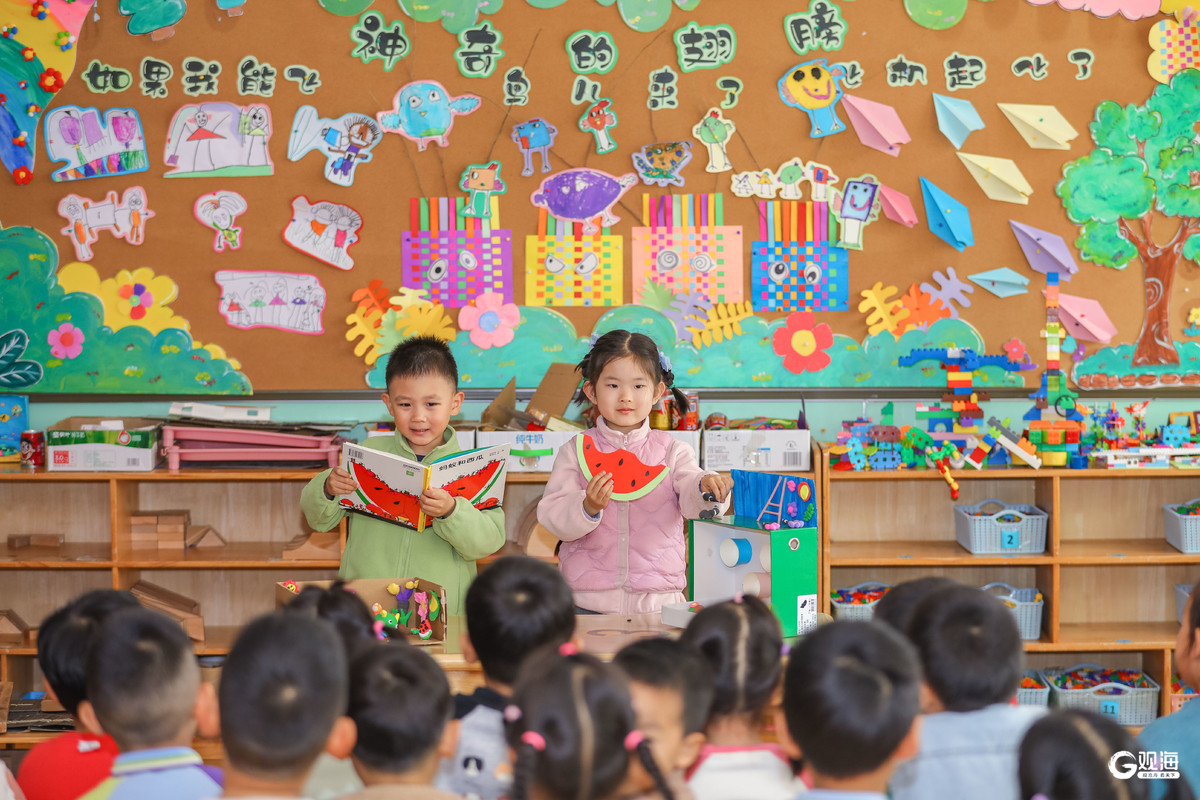 小朋友在青岛市李沧区青山路幼儿园开展的“‘青’情阅读 阅润童心”活动中分享绘本故事。