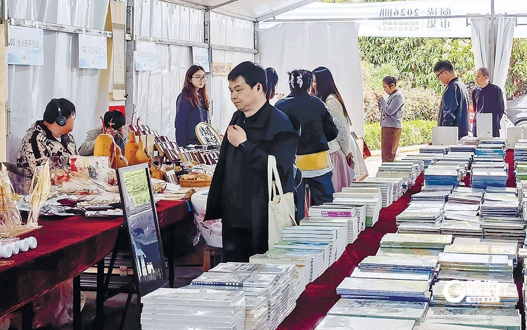 4月21日,市民在香港中路青岛书城门前的阅读市集徜徉书海,品味墨香。王雷 摄
