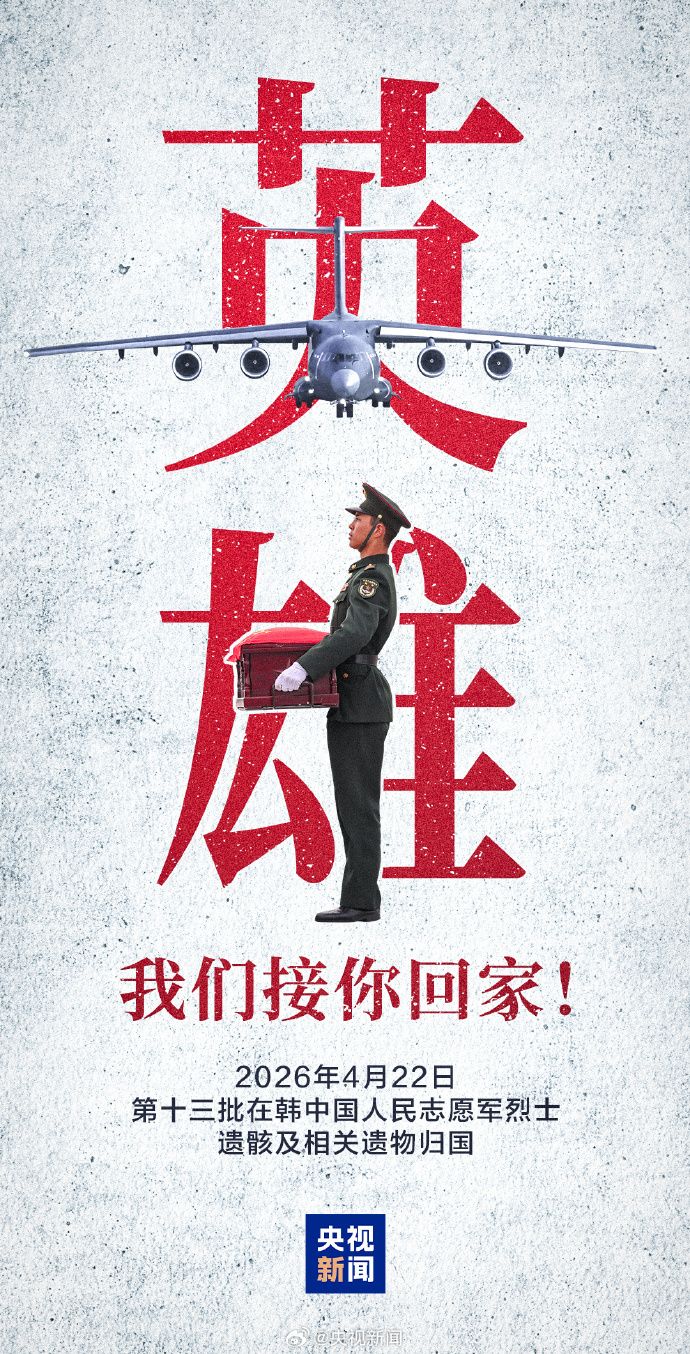 山河共盼,英雄安息!12响最高鸣枪礼节致敬志愿军烈士 2026-04-23 10:37 央视新闻客户端 0 今天上午,第十三批在韩中国人民志愿军烈士遗骸安葬仪式在沈阳抗美援朝烈士陵园举行。 安葬仪式上,礼兵鸣枪12响,向志愿军烈士致敬。这也是鸣枪礼的最高礼节。 山河共盼 英雄安息 忠魂不泯 浩气长存 向英烈致敬! 责任编辑:吕靖雯