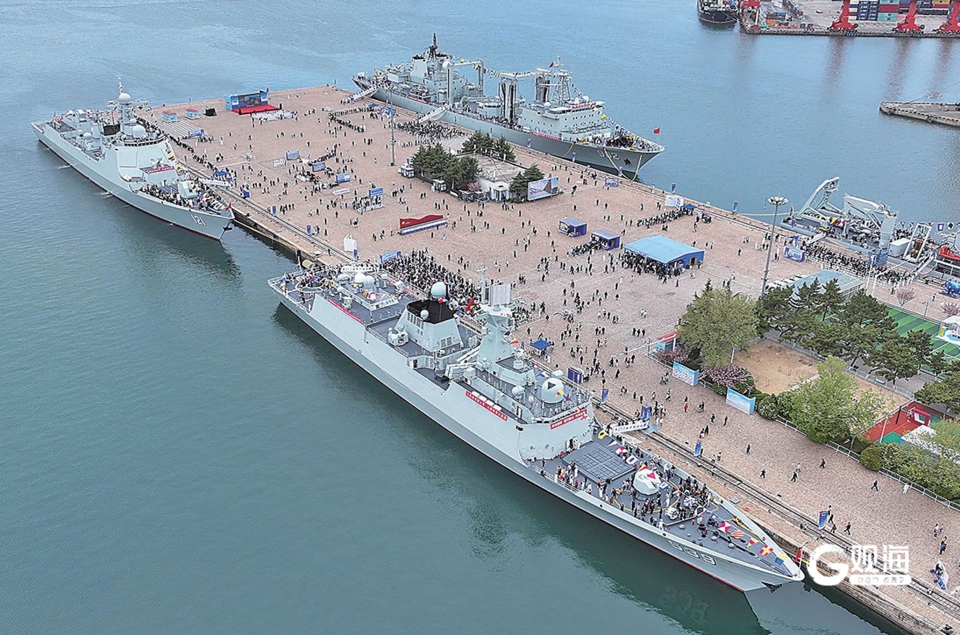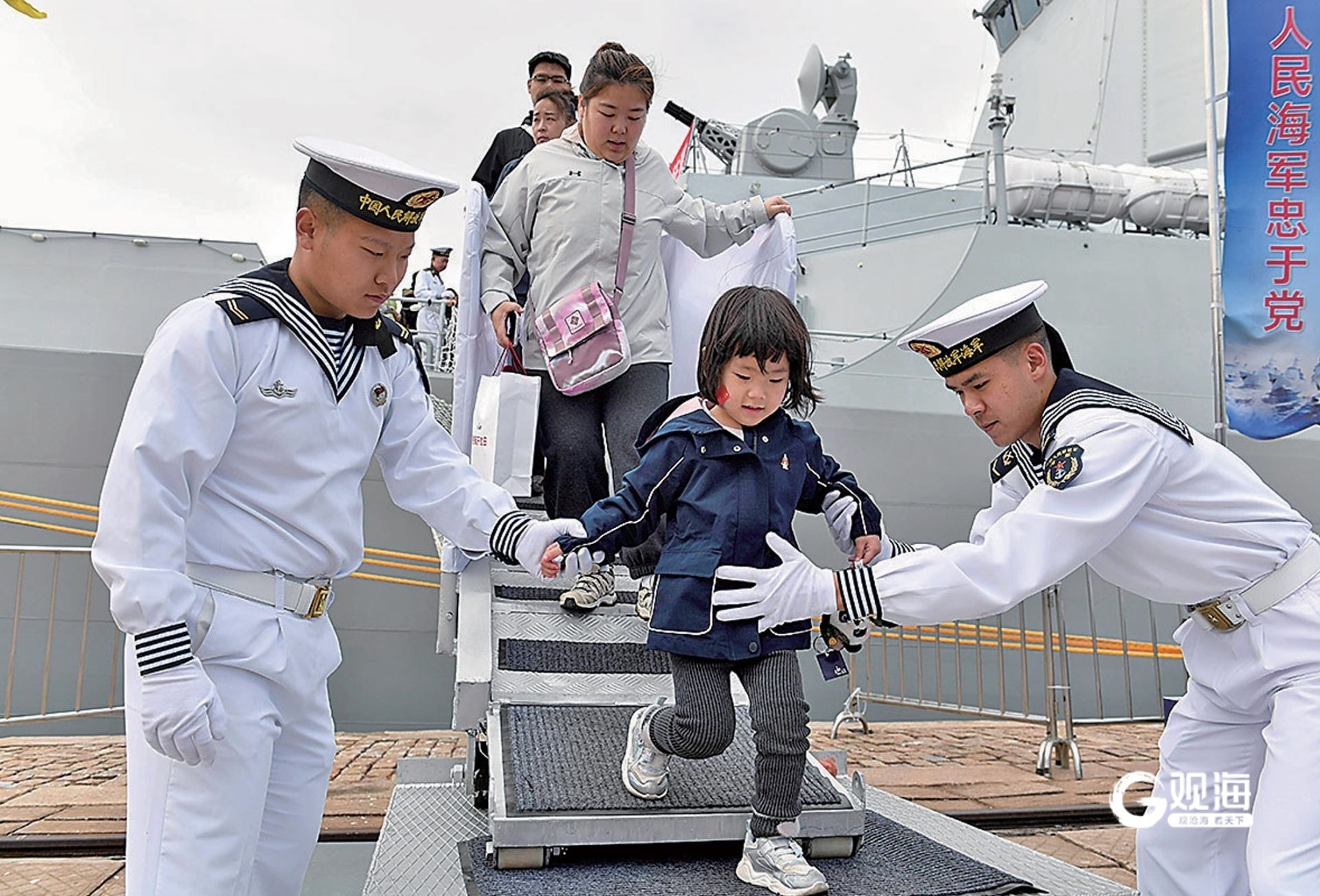 青岛港三号码头的舰艇吸引了来自全国各地的参观者。