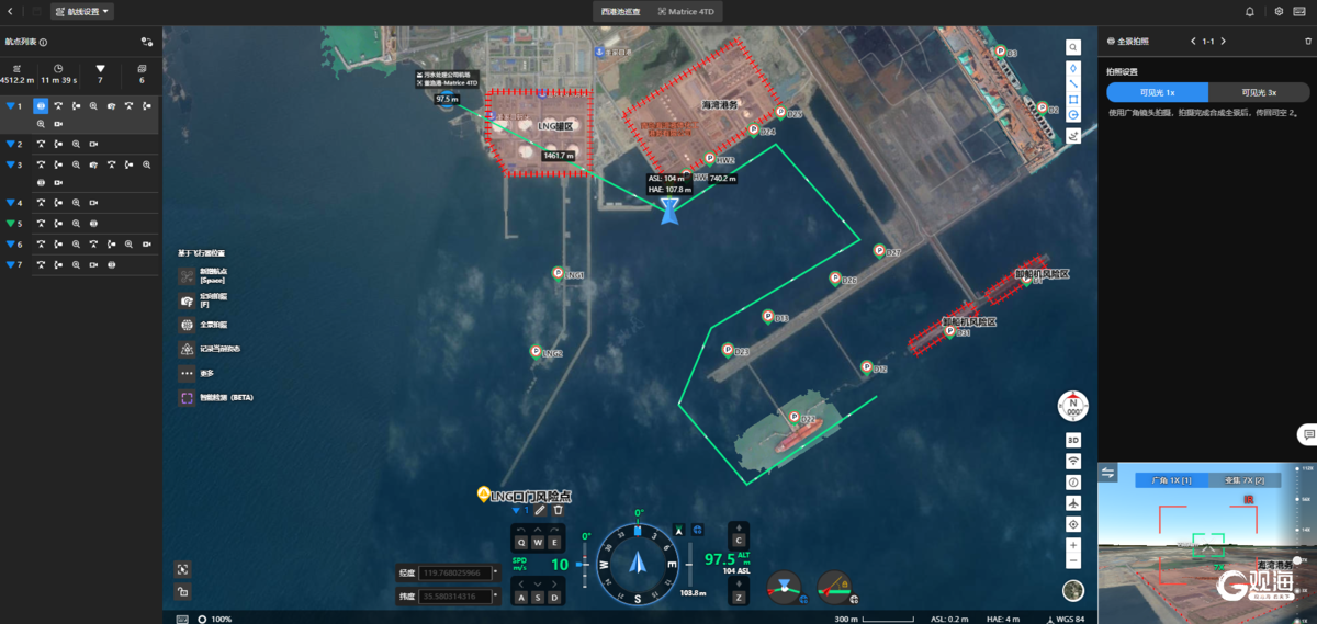 如今,董家口海事局在无人机智慧巡航系统中预先设定飞行航线,无人机便可按照指令自动起飞、巡航、返航、充电,全过程无需人工实时操控。无人机按照执法人员监管需求精准飞越重点水域、锚地、码头、航道等关键区域,实现标准化、程序化巡查,让监管视线“不掉线”。