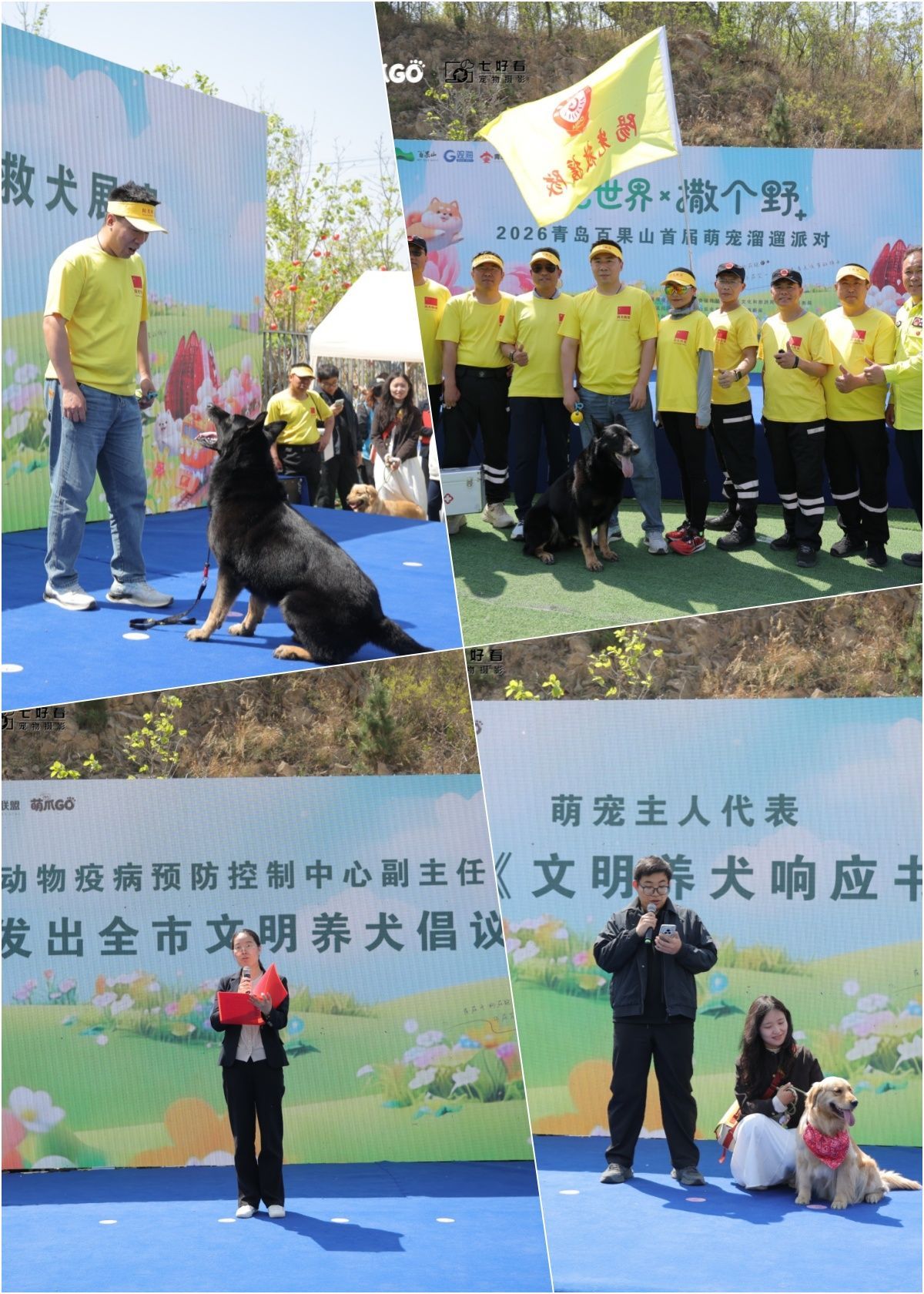 启动仪式上,来自阳光救援队的搜救犬用精准的指令服从和障碍穿越表演,赢得了满场“哇”声和掌声,为这场派对奠定了专业又有爱的基调。随后,在青岛市动物疫病预防控制中心副主任段笑笑发出全市文明养犬倡议后,宠物主人代表杨硕走上台,郑重宣读了《文明养犬响应书》。“文明养犬,从点滴做起,从今天做起。让我们用行动证明:爱,是有责任的距离。”他的话,说到了现场很多毛孩子主人的心坎里。