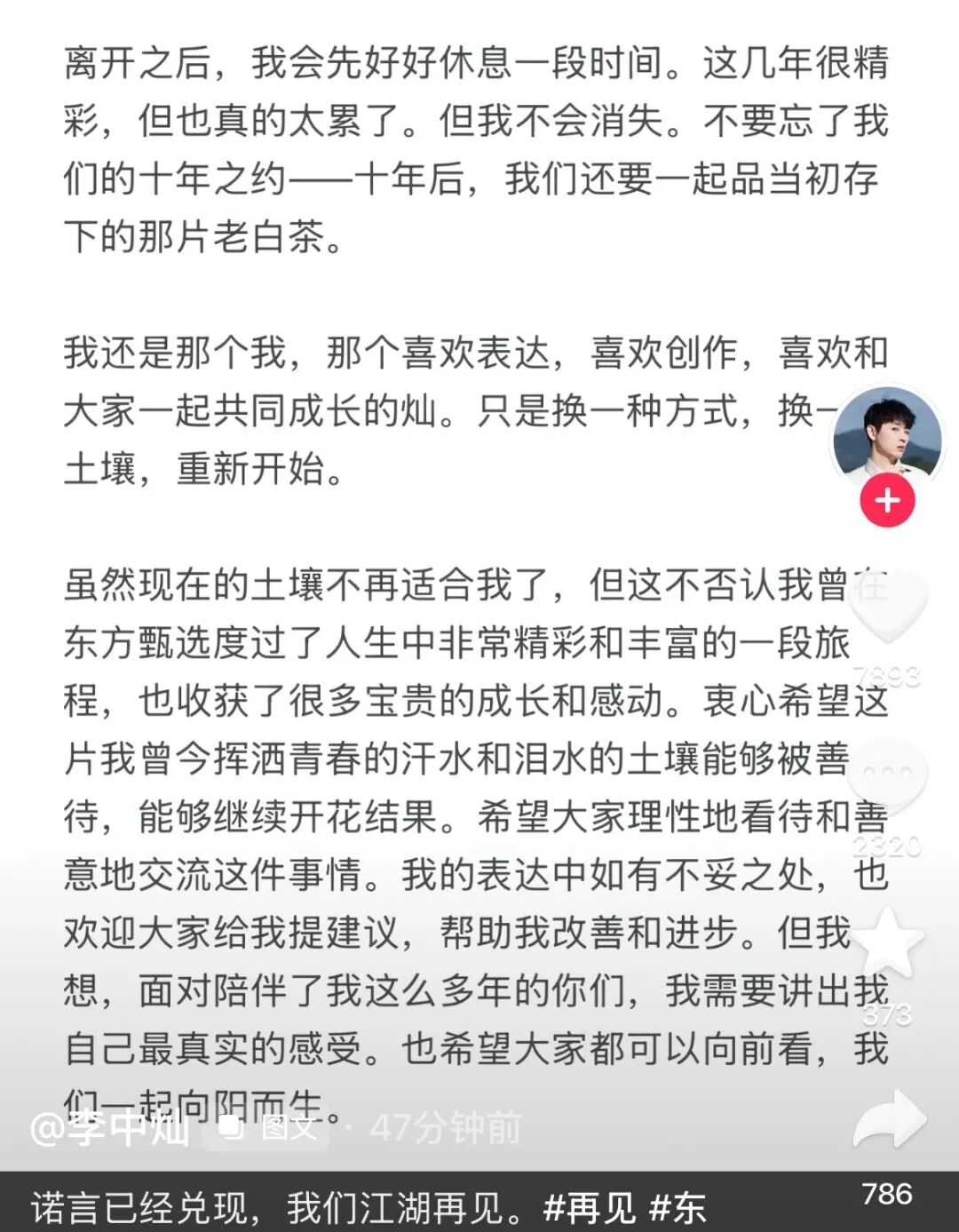 东方甄选主播离职潮持续扩大,截至目前,已有明明、天权、中灿、林林等人公开回应离职。