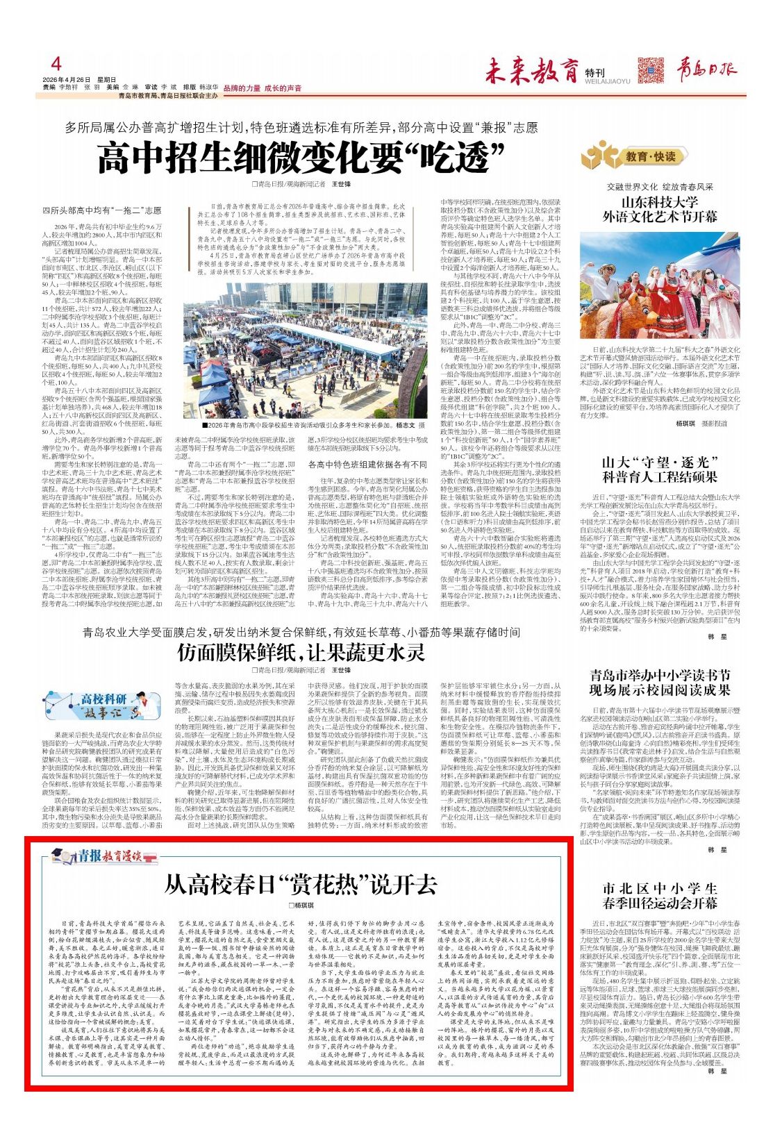 课堂是大学的主阵地,但从来不是唯一的阵地。楼外的樱花、窗外的月亮以及校园里的每一株草木、每一缕清风,都可以成为教育的载体,成为滋润心灵的养分。我们期待,有越来越多这样关于美的教育。(青岛日报/观海新闻记者 杨琪琪)