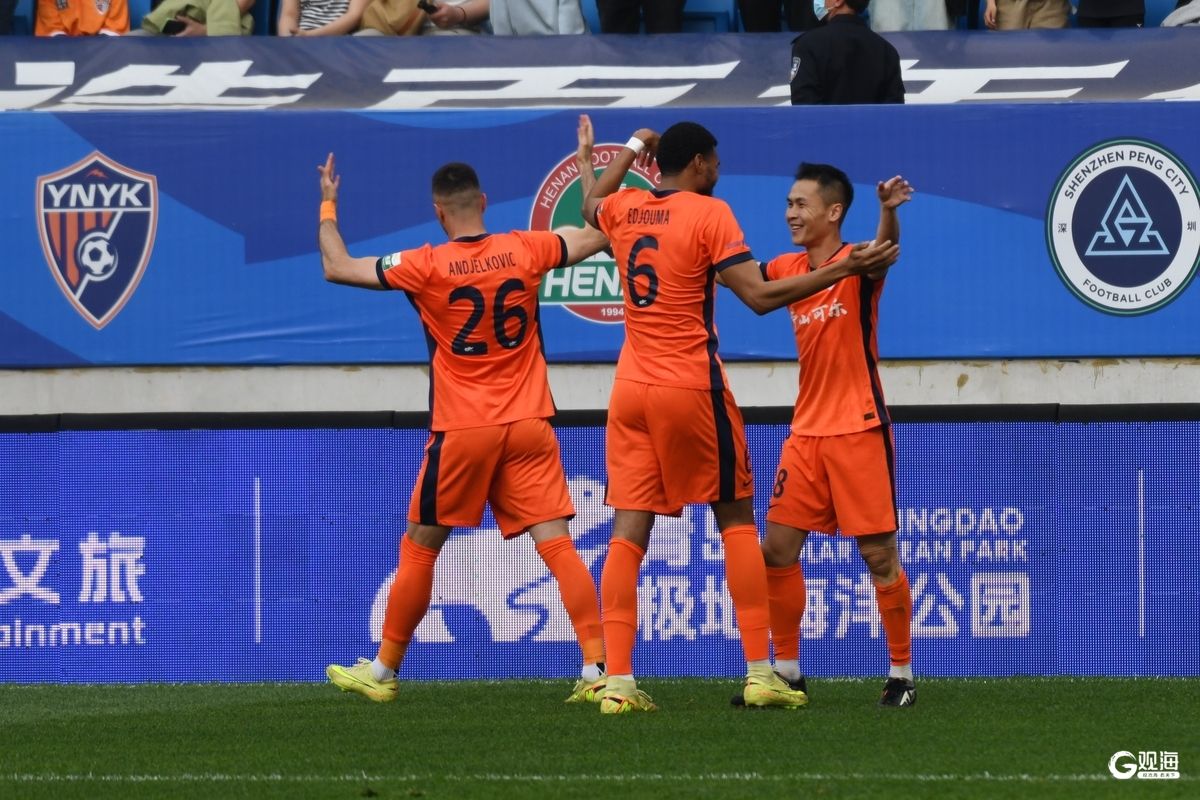 下半场52分钟,上半场表现出色的宋文杰受伤,被斯特兰德贝里换下。第60分钟,克雷桑被替换上场。8分钟后,斯特兰德贝里错失门前射门机会。第72分钟,斯特兰德贝里送出妙传,中路跟进的梅萨乌迪射门被挡出,错失扩大比分良机。第80分钟,金永浩为海牛队再进一球。终场结束前克雷桑为山东队打进挽回颜面的一球。补时阶段,梅萨乌迪直接任意球破门,最终,青岛海牛队4:1战胜对手,拿到关键三分。