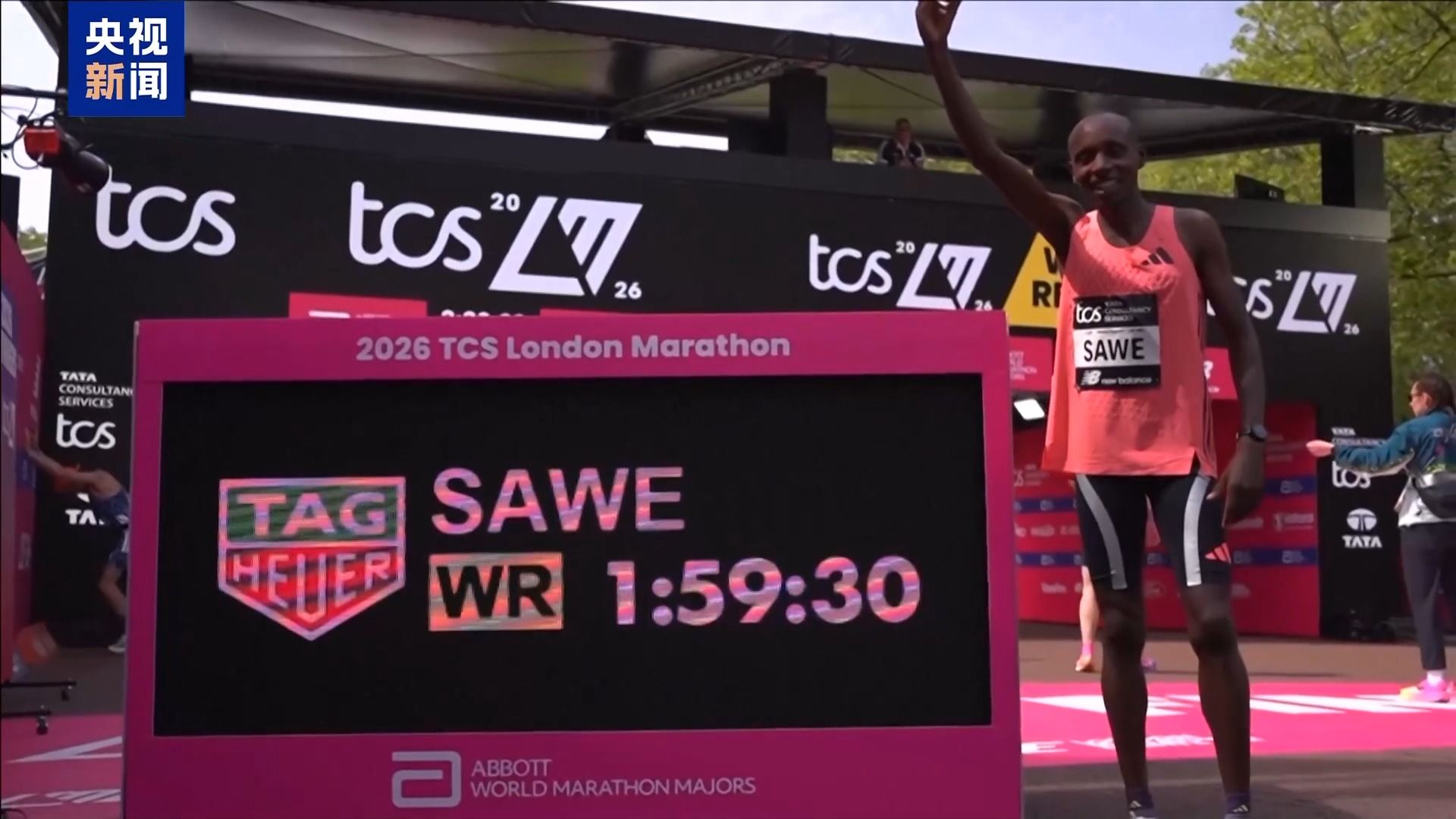 在26日举行的2026伦敦马拉松赛男子组赛事中,肯尼亚选手塞巴斯蒂安·萨维以1小时59分30秒的成绩率先撞线,成为历史上首位在全程马拉松正式比赛中跑进2小时的运动员。首次参加全程马拉松赛事的埃塞俄比亚选手克杰勒恰同样打破2小时大关,以1小时59分41秒获得亚军。