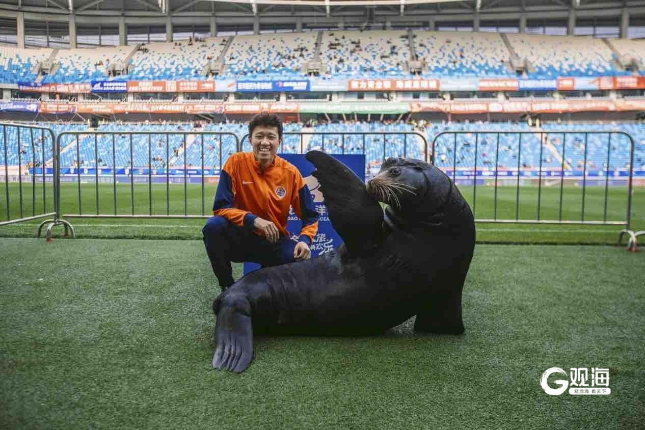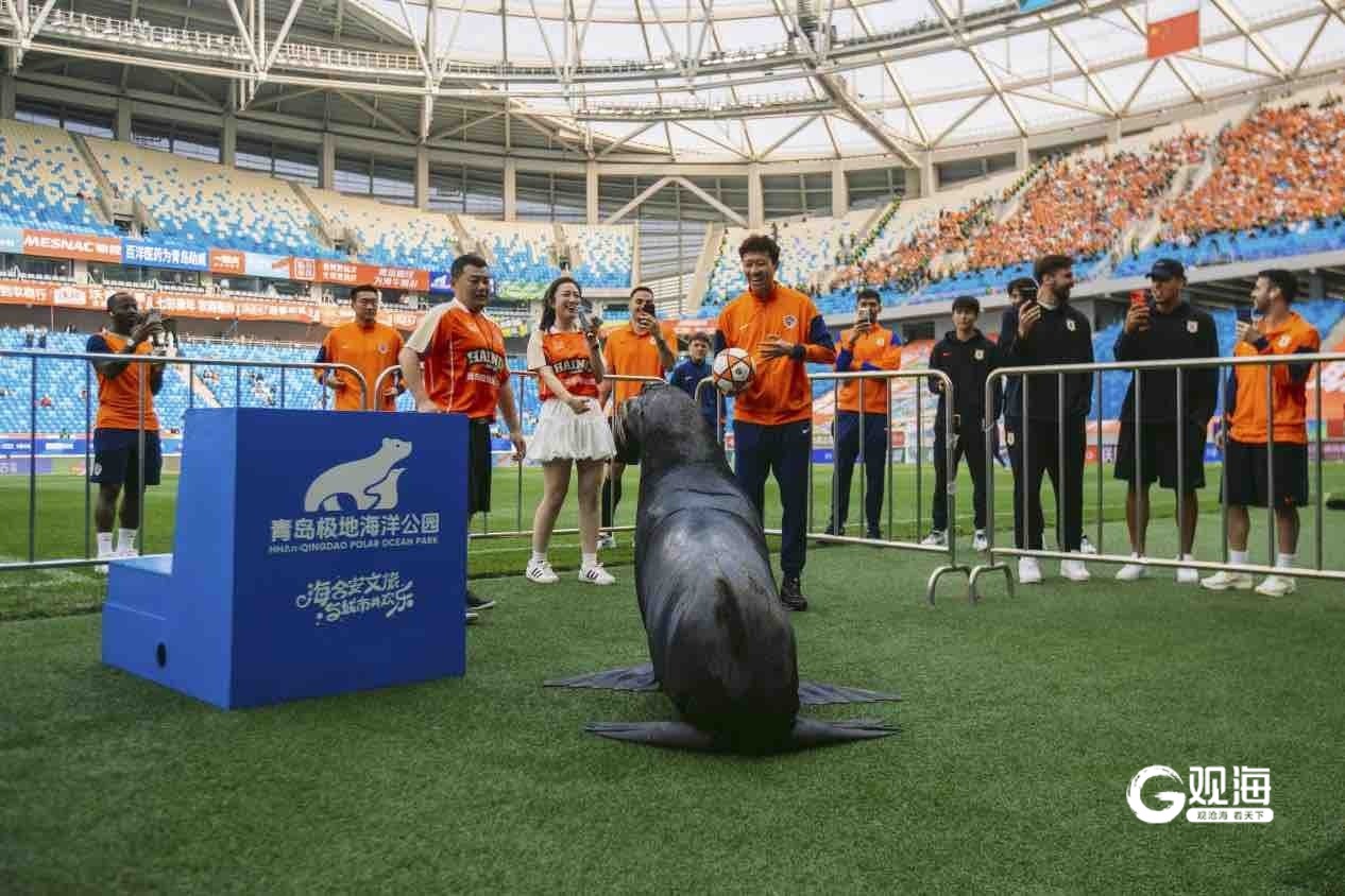 青岛日报社/观海新闻4月27日讯 4月26日晚,在中超联赛青岛海牛主场赛事现场,来自海合安青岛极地海洋公园的海狮明星“好客”惊喜亮相,瞬间成为赛前焦点,为绿茵球场增添海洋活力与欢乐氛围。