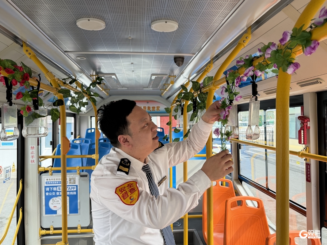 青岛日报社/观海新闻4月27日讯 春风拂面,草长莺飞。近日,不少市民在乘坐“环浮山公交”线路时惊喜地发现,一辆“开往春天”的公交车悄然上线。走进车厢,栏杆、扶手上装点着娇艳的仿真花枝和嫩绿藤蔓,仿佛将一座微型春日花园搬进了公交车内。在车厢一角,专门设立的“春日寄语”留言板上,“每天开心”“无畏”“顺遂”等温暖话语跃然纸上——这些朴素的祝福,出自驾驶员房金宝之手,也是他精心打造“上春山”主题车厢的初衷:“希望每一位乘客从上车那一刻起,就能感受到春天的生机和美好的祝愿。”