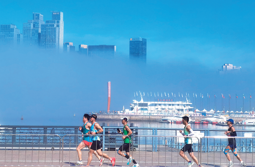 青马跑者在比赛中邂逅平流雾。