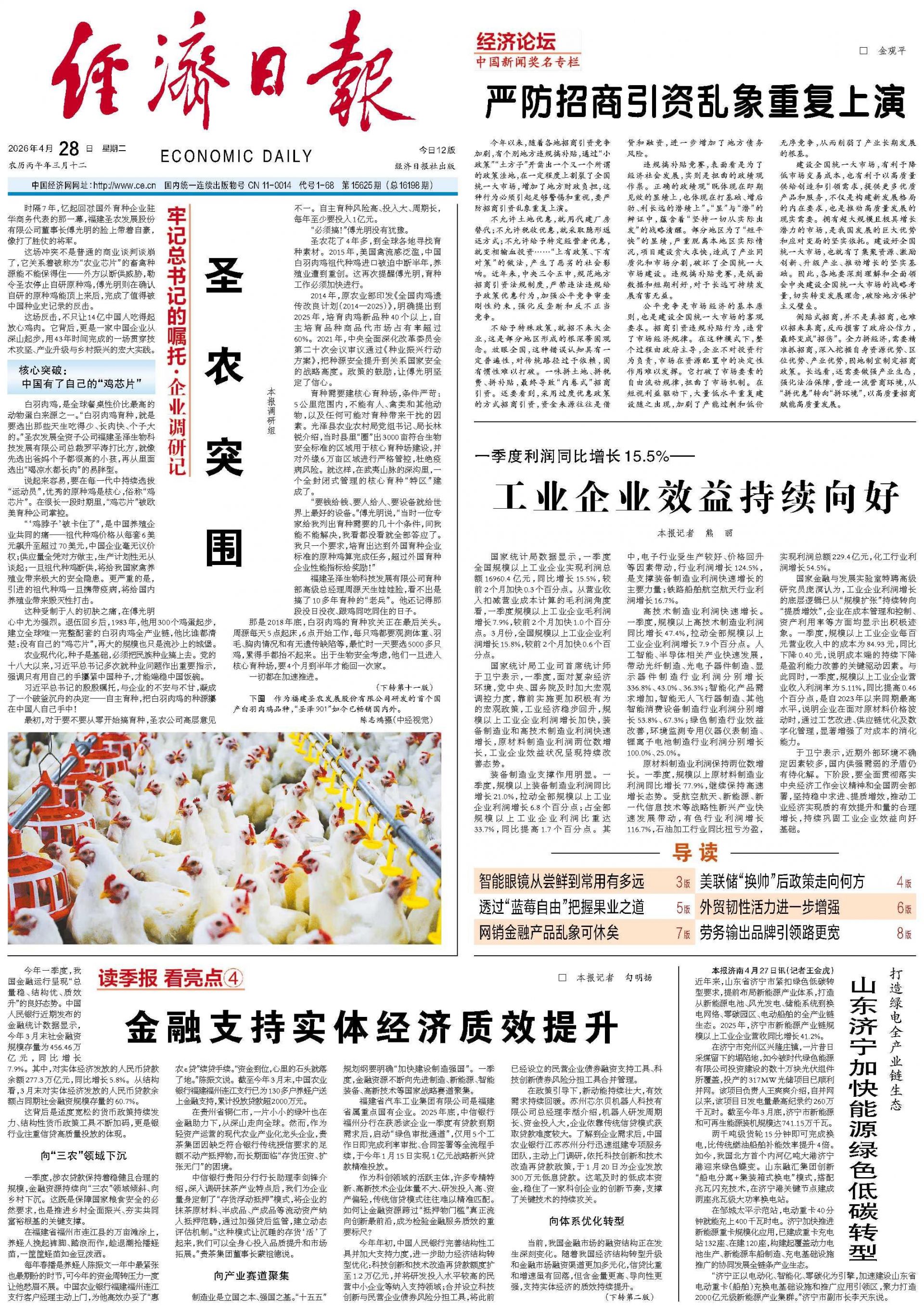 本报济南4月27日讯(记者王金虎)近年来,山东省济宁市紧扣绿色低碳转型要求,提前布局新能源产业体系,打造从新能源电池、风光发电、储能系统到换电网络、零碳园区、电动船舶的全产业链生态。2025年,济宁市新能源产业链规模以上工业企业营收同比增长41.2%。