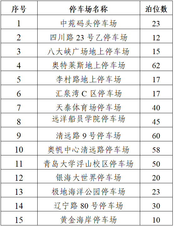 1.团岛区域(中苑码头停车场、八大峡广场地上停车场)
