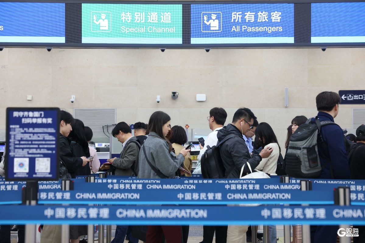 “五一”假期,青岛机场口岸出入境客流高峰明显。青岛机场边检站预测,入境客流集中在每日8:30—9:30、13:00—14:30、23:30-次日00:30,出境高峰为每日8:30—10:00、13:00-14:00。青岛机场边检站执勤四队教导员史墨染介绍,面对假期大客流与外籍旅客集中入境的情况,青岛机场边检站提前部署、优化服务,针对性做好警力与通道调配,确保高峰通关顺畅。大力推行外国人入境卡网上填报、信息采集“双前置”举措,帮助来华、来鲁外籍旅客快速办结通关手续,减少候检时间,为提升“中国游”“中国购”的对外吸引力提供坚实支撑。