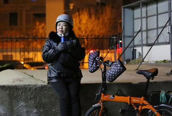 晚上7点,中联广场,张翠梅穿好工装,戴上头盔,骑着折叠电动车来到始发地,准备开启一天的首单。