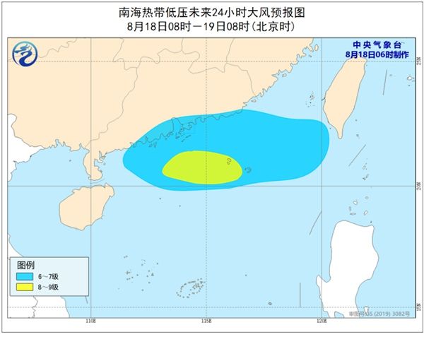 大风预报:18日08时至19日08时,南海北部、广东沿海将有6-7级大风,其中南海北部的部分海域风力有8-9级,阵风10-11级。
