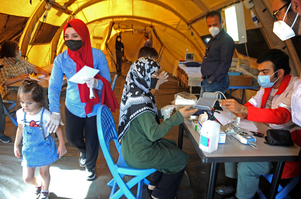 8月10日,在位于黎巴嫩首都贝鲁特的黎巴嫩大学校区,一名医生在一家由伊朗援助的野战医院内接诊。(新华社发 比拉尔·贾维希摄)