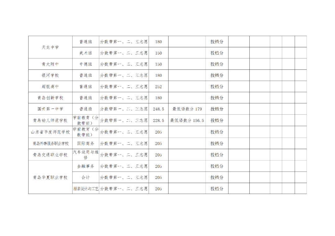 2020年青岛市高中阶段学校第二阶段分数带招生录取分数线出炉